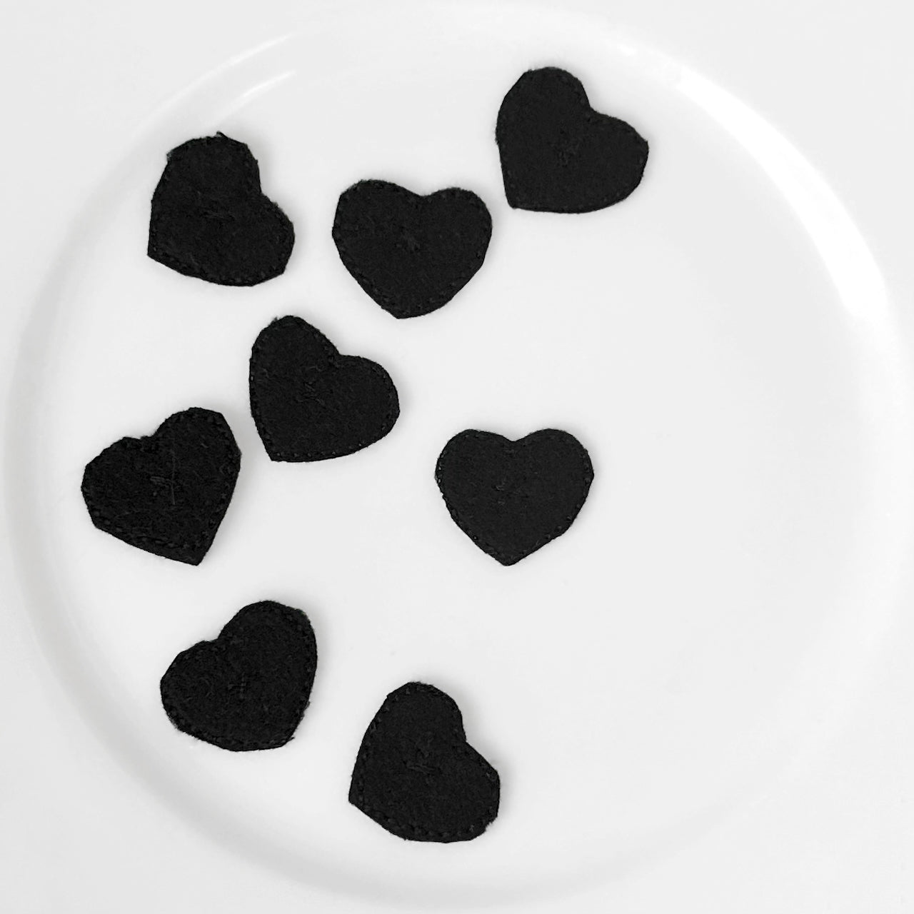 Iron on black felt heart applique.