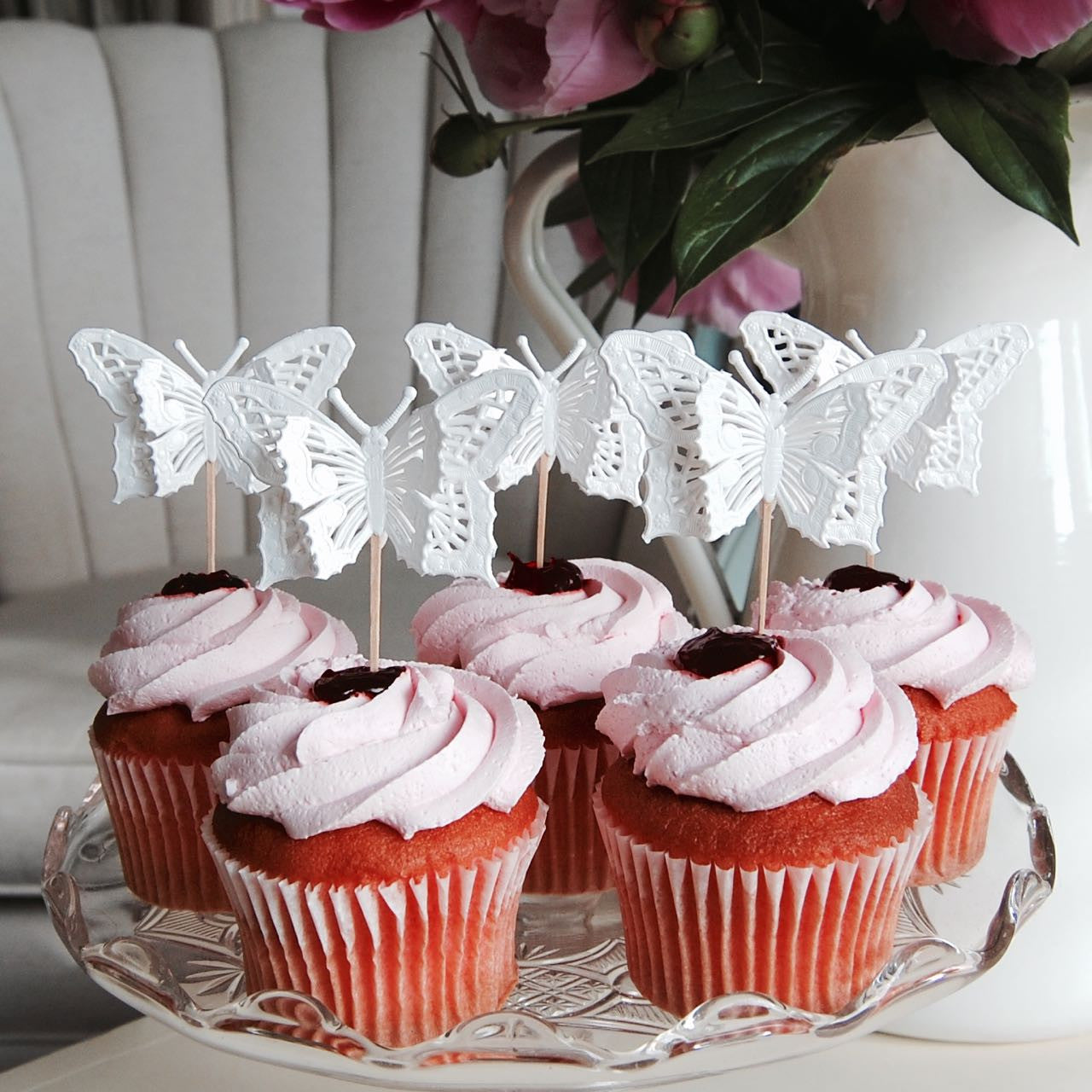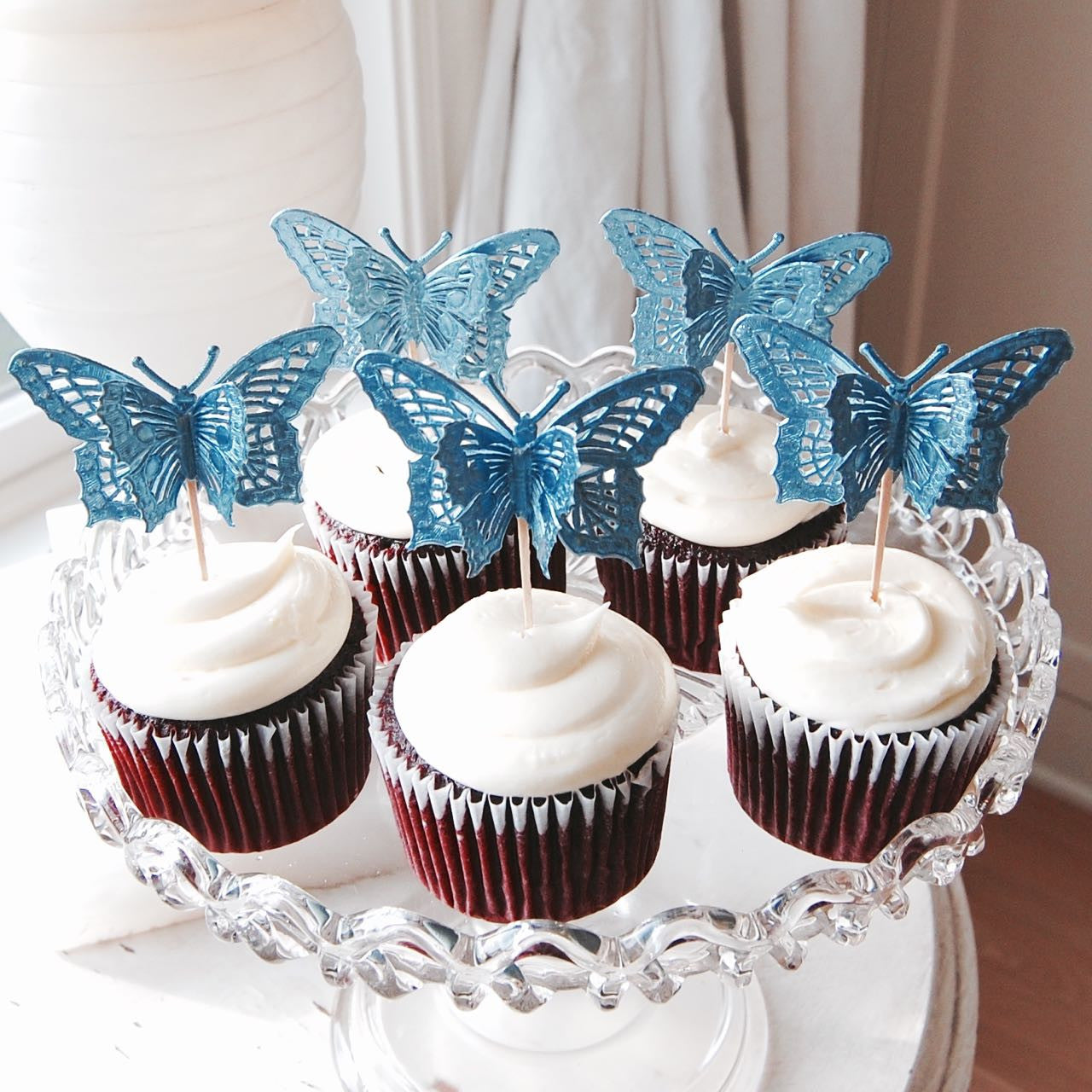 Beautiful embossed butterfly Dresden cupcake toppers ready to take flight. Dress up a bridal or baby shower, celebrate a special occasion with these elegant fluttering decorations. Made to order, designed by Michelle Rose Jorgensen