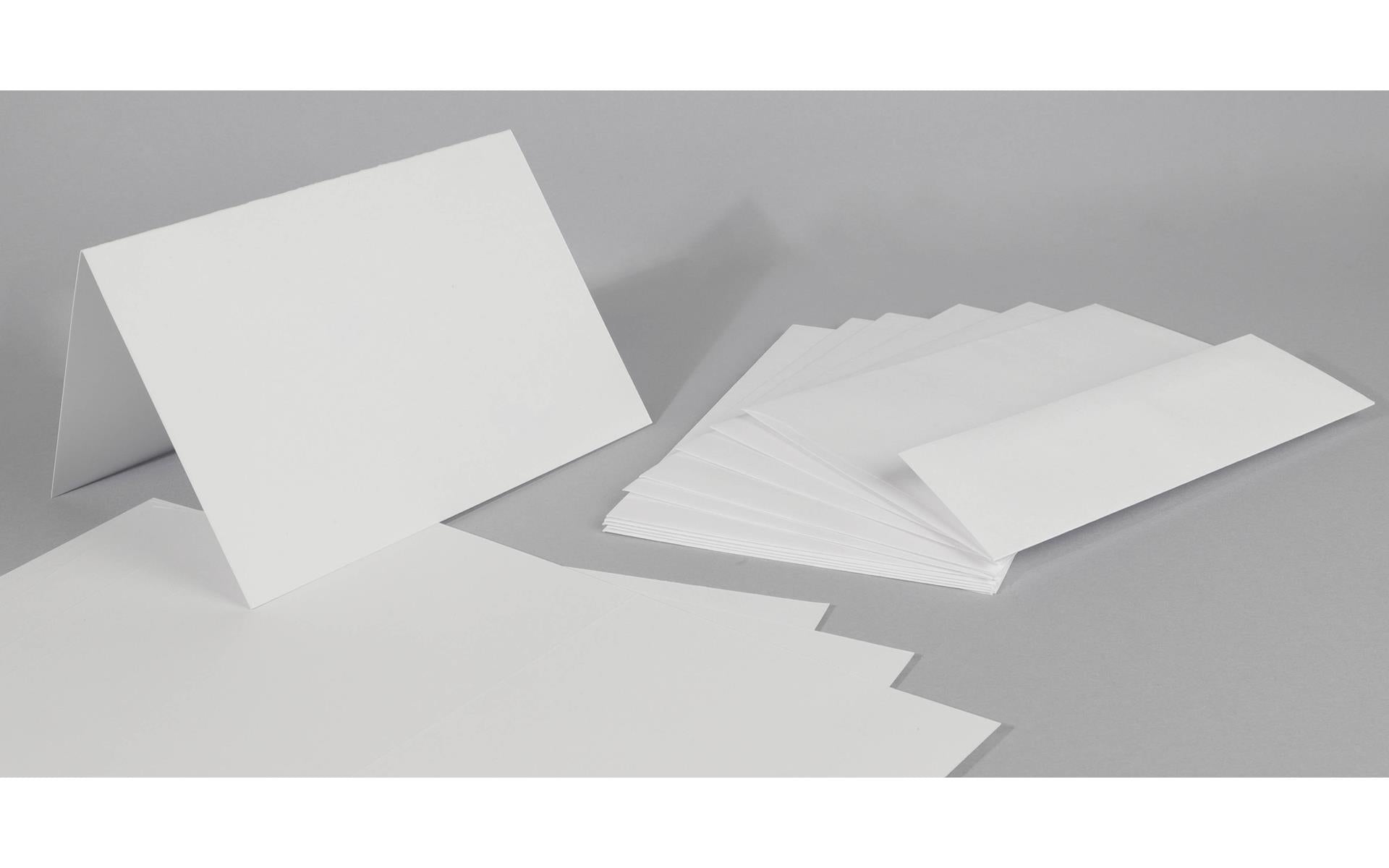 5"x 7" 100lb 20pc- Cards are scored and ready to fold to 5"x 7". Contains 20 each of 100lb heavyweight cardstock cards and 60lb A7 envelopes.