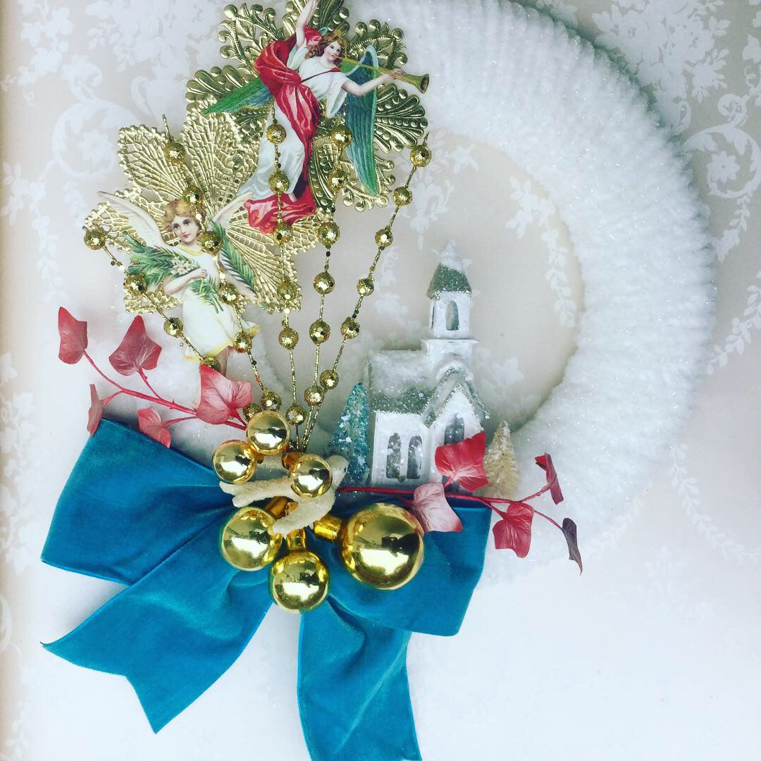 We couldn't find anything on the market that looked even close to the vintage wreaths made in the 1940's, so we found a company who could make it to our specifications, and it is pretty! White nylon fibers from Italy, braided together with a little lurex for a touch of sparkle, to form a fluffy cord.