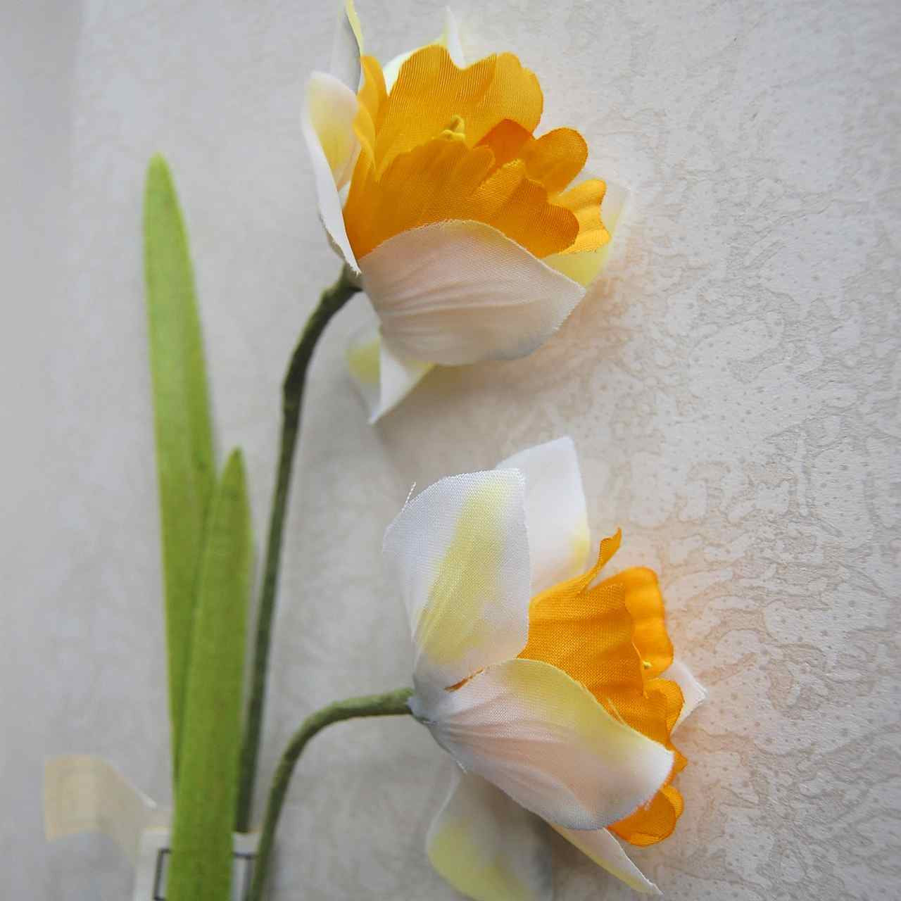 Just in time for Spring, all through the year. These daffodils have long stems and can be used in home decor as well as in Millinery.