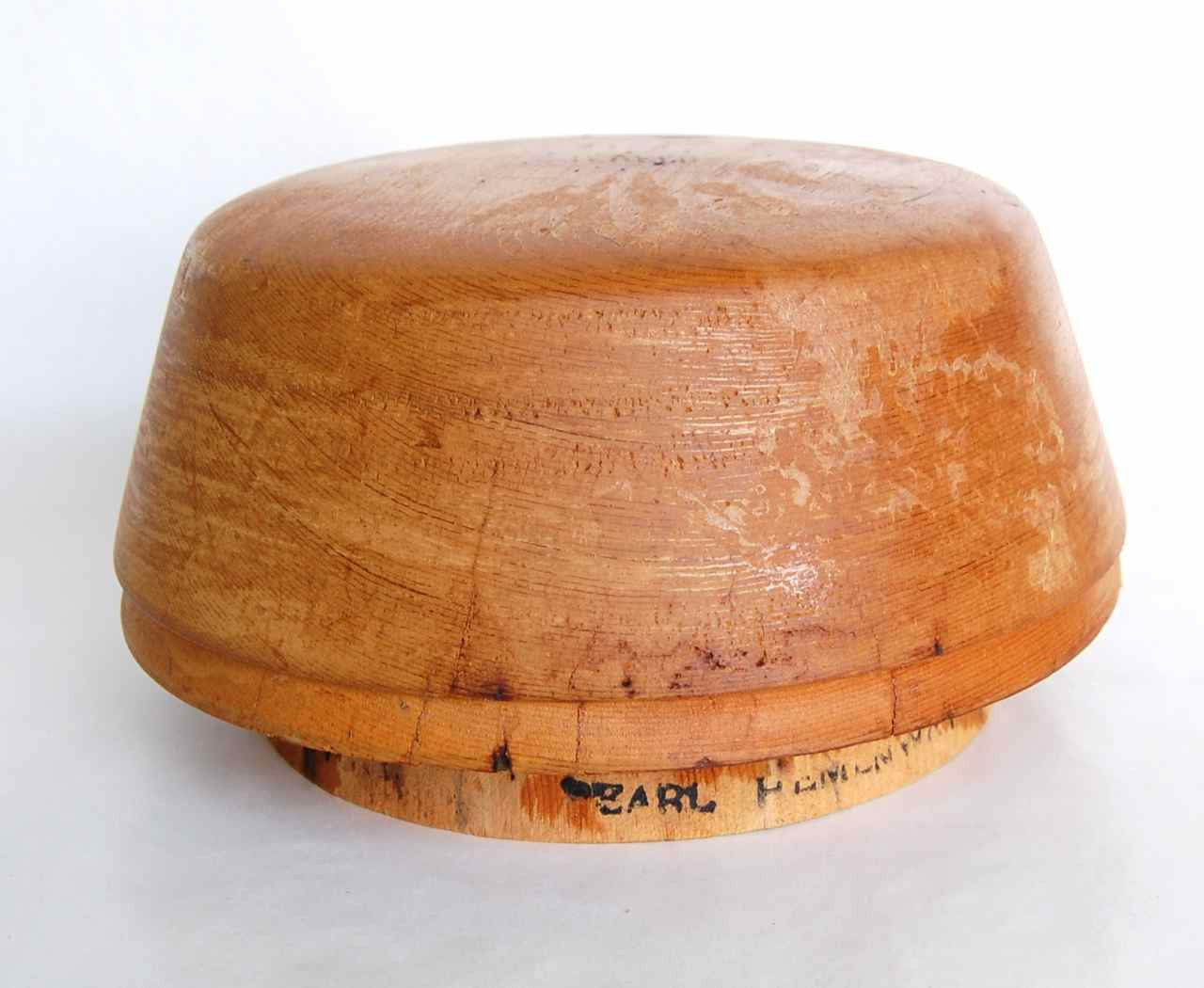 Rare, hand carved hat brim block mold.This 1-piece block will form a deep cloche brim or maybe a simple crown. Cut the head-size opening to the dimension desired.