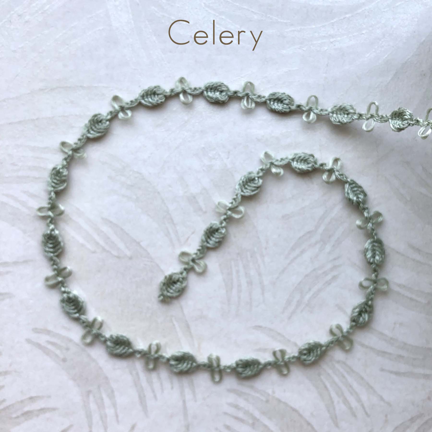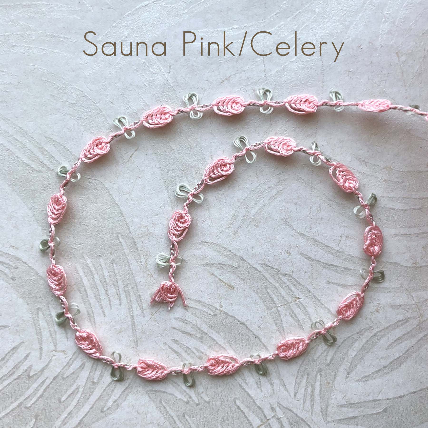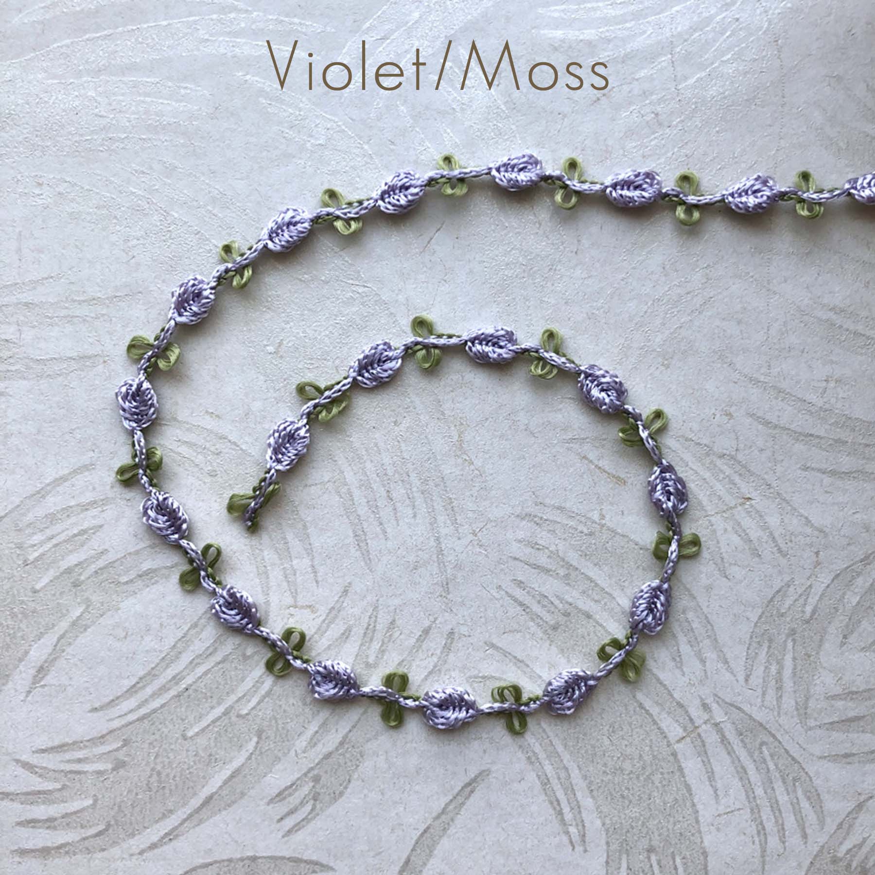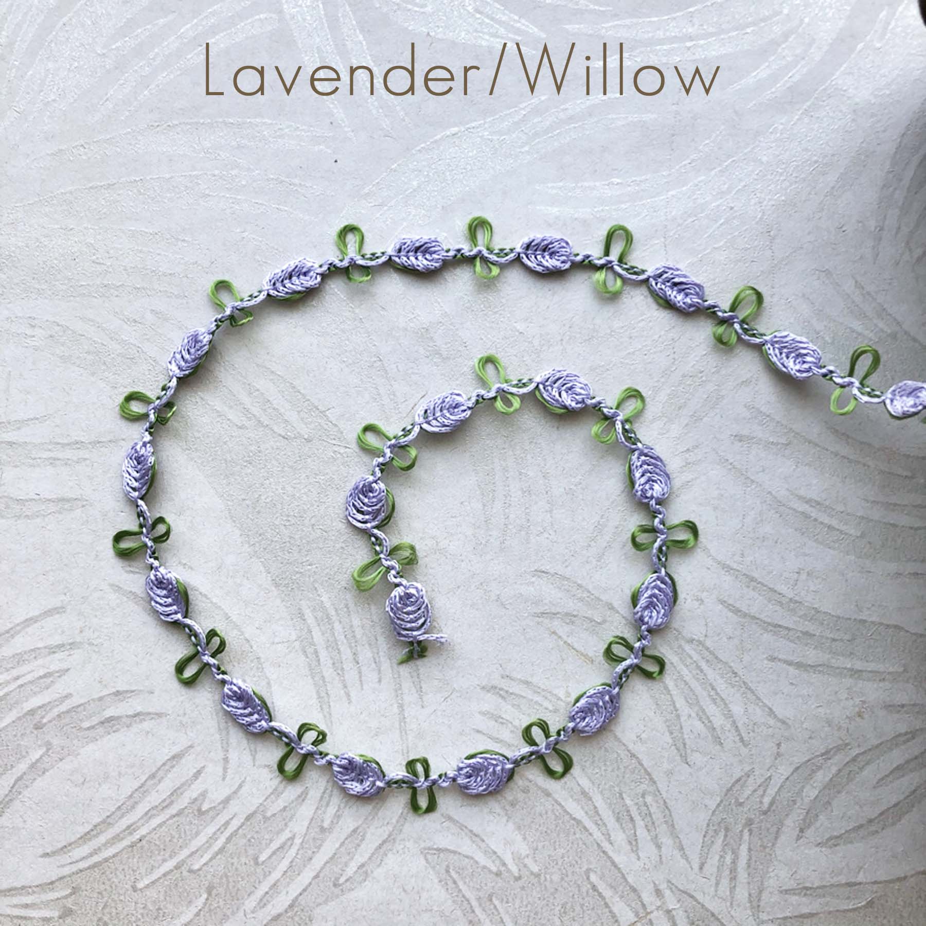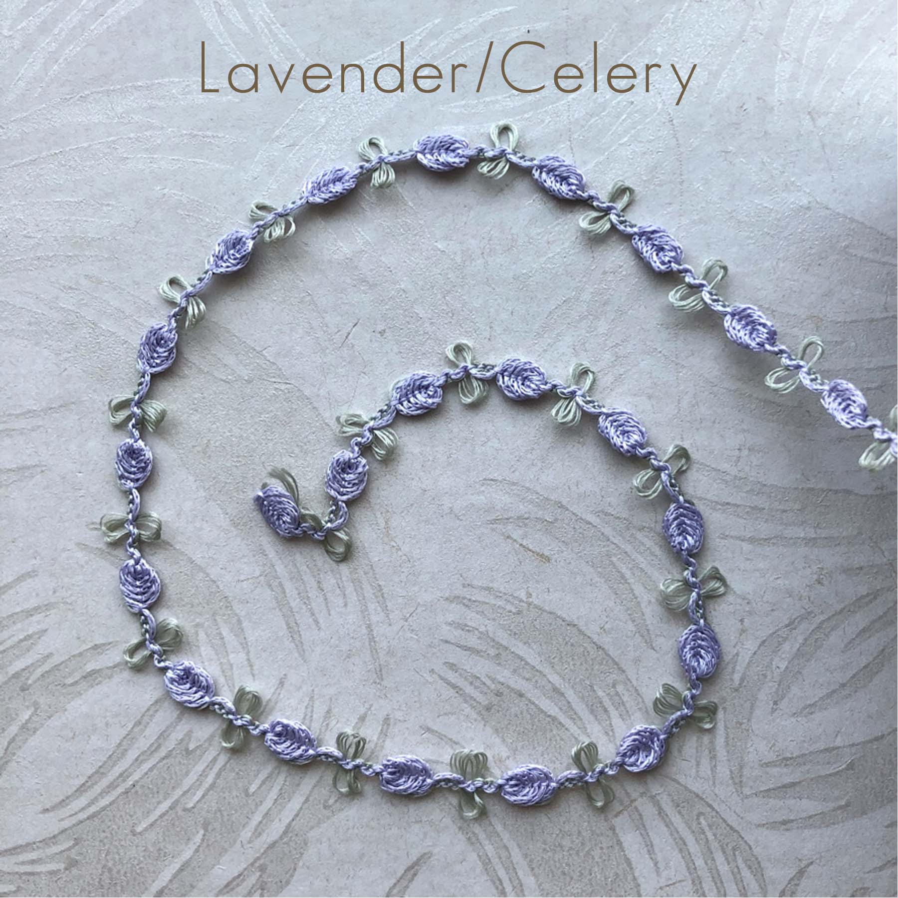 The perfect, delicate floral trim made from woven threads into the most delightful trim in so many color combinations. Wonderful for paper crafting, clothing, pillows, and so much more.