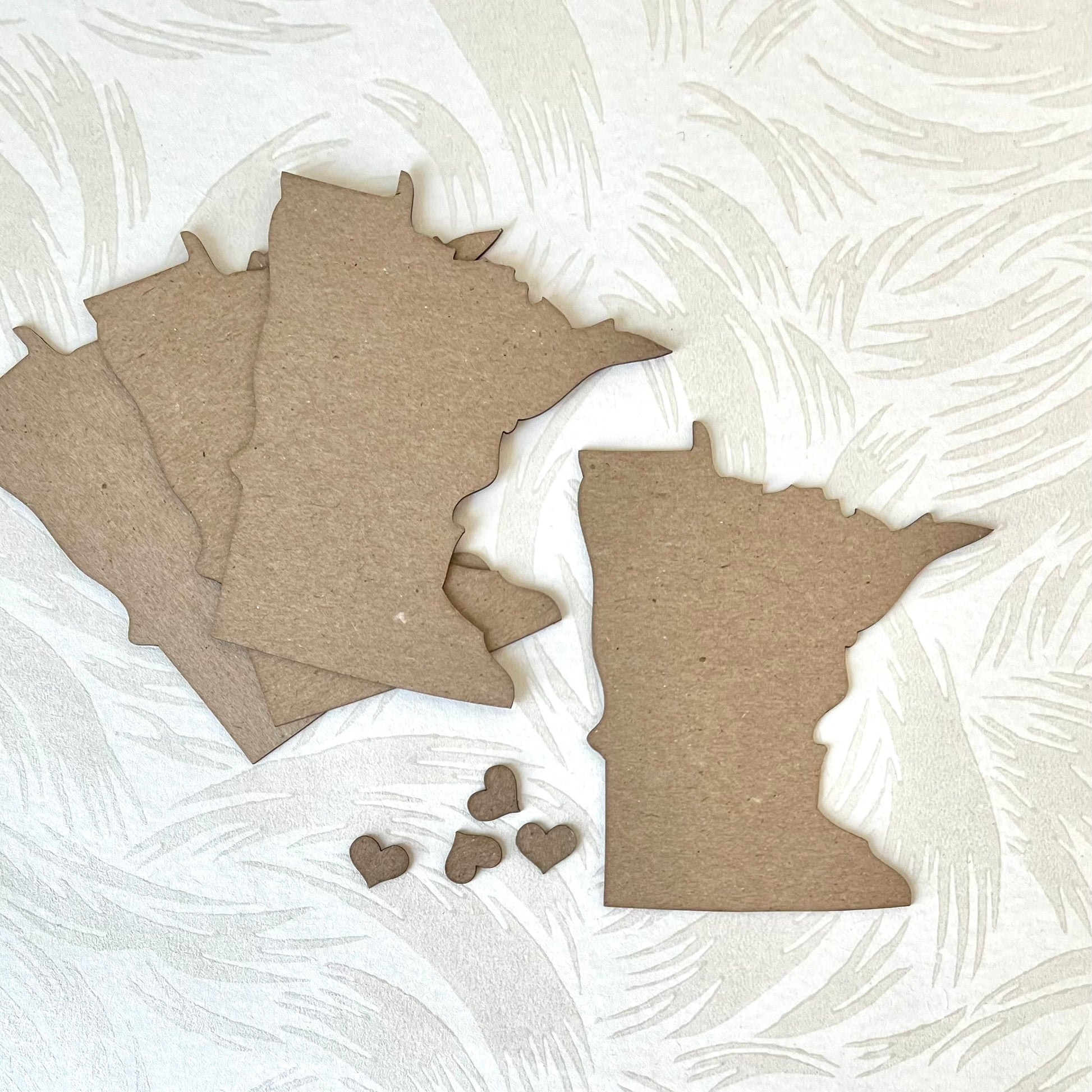 Love from Minnesota sturdy Kraft chipboard shapes of our state with hearts.