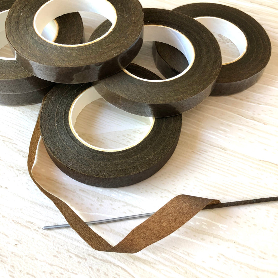 Essential in creating flowers with crepe paper, garlands of silk flowers and many other uses. Tape is stretchy and tacky, not sticky.