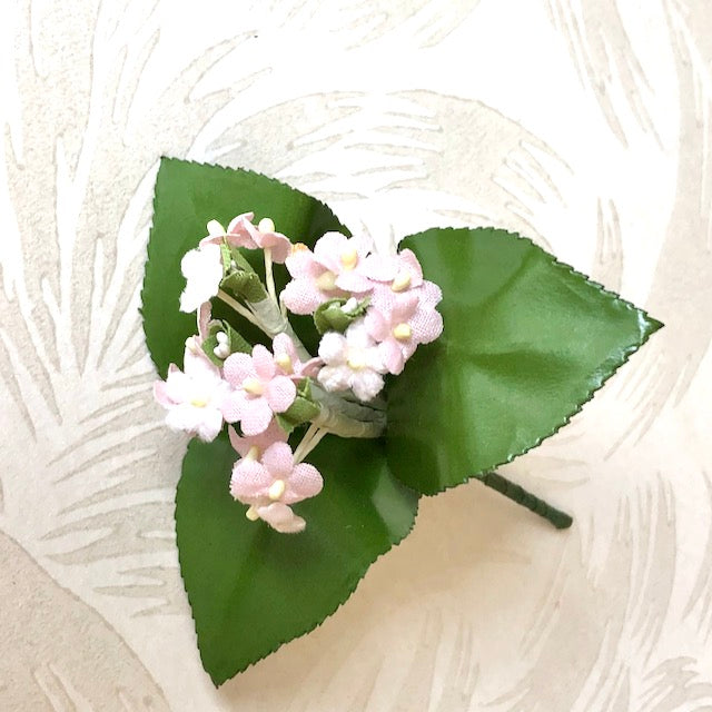 Pretty tiny flowers in fabric and velvet gathered in a bunch, wrapped with paper leaves. Made in Germany