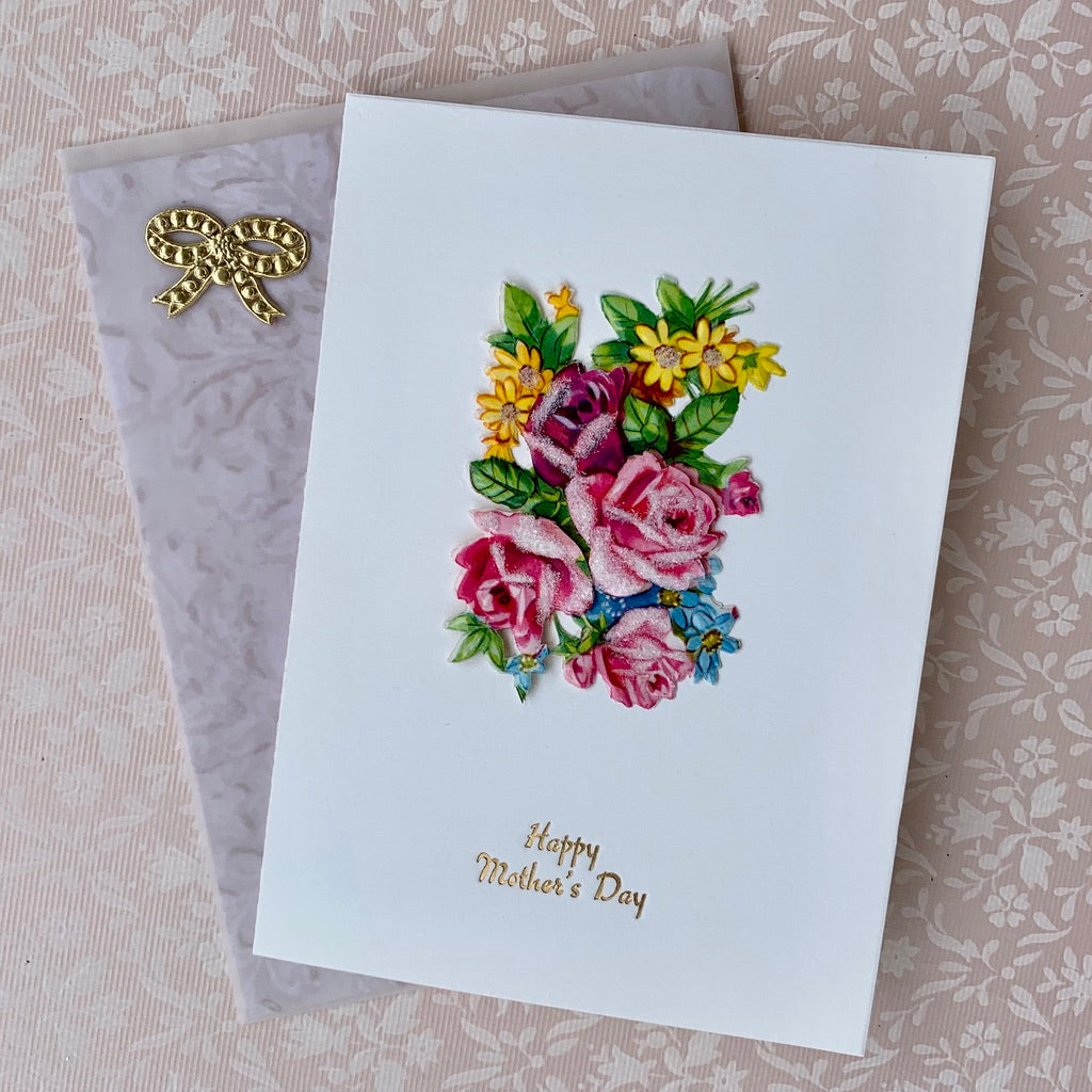 Sugared Floral Bouquet Card - Hand Made