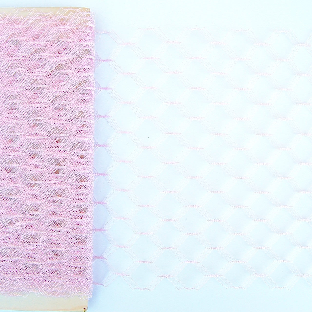 The weave of this netting gives a three dimentional affect. Chunky and stiff, this netting is great for birdcage veils, hat and fascinators.