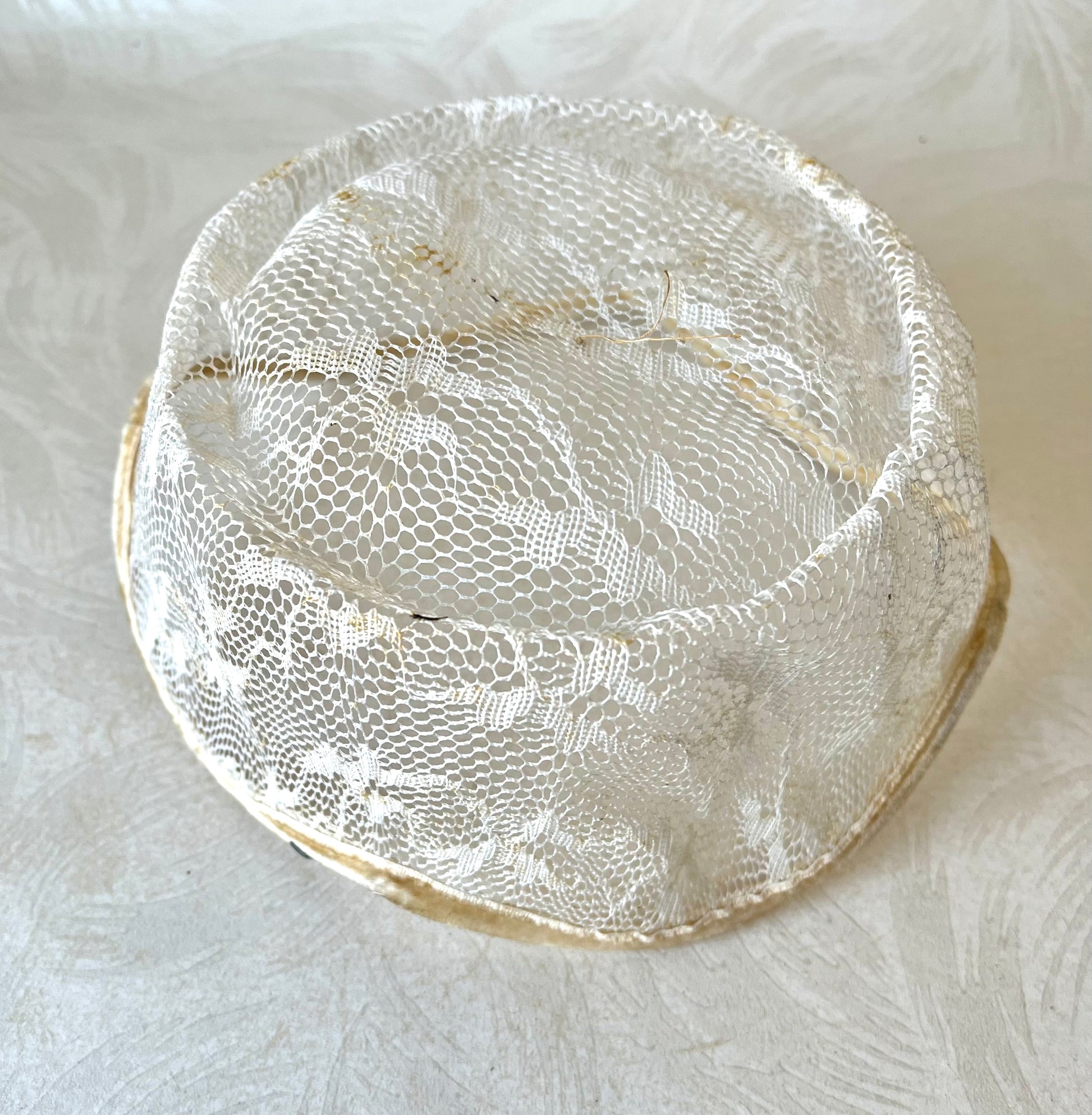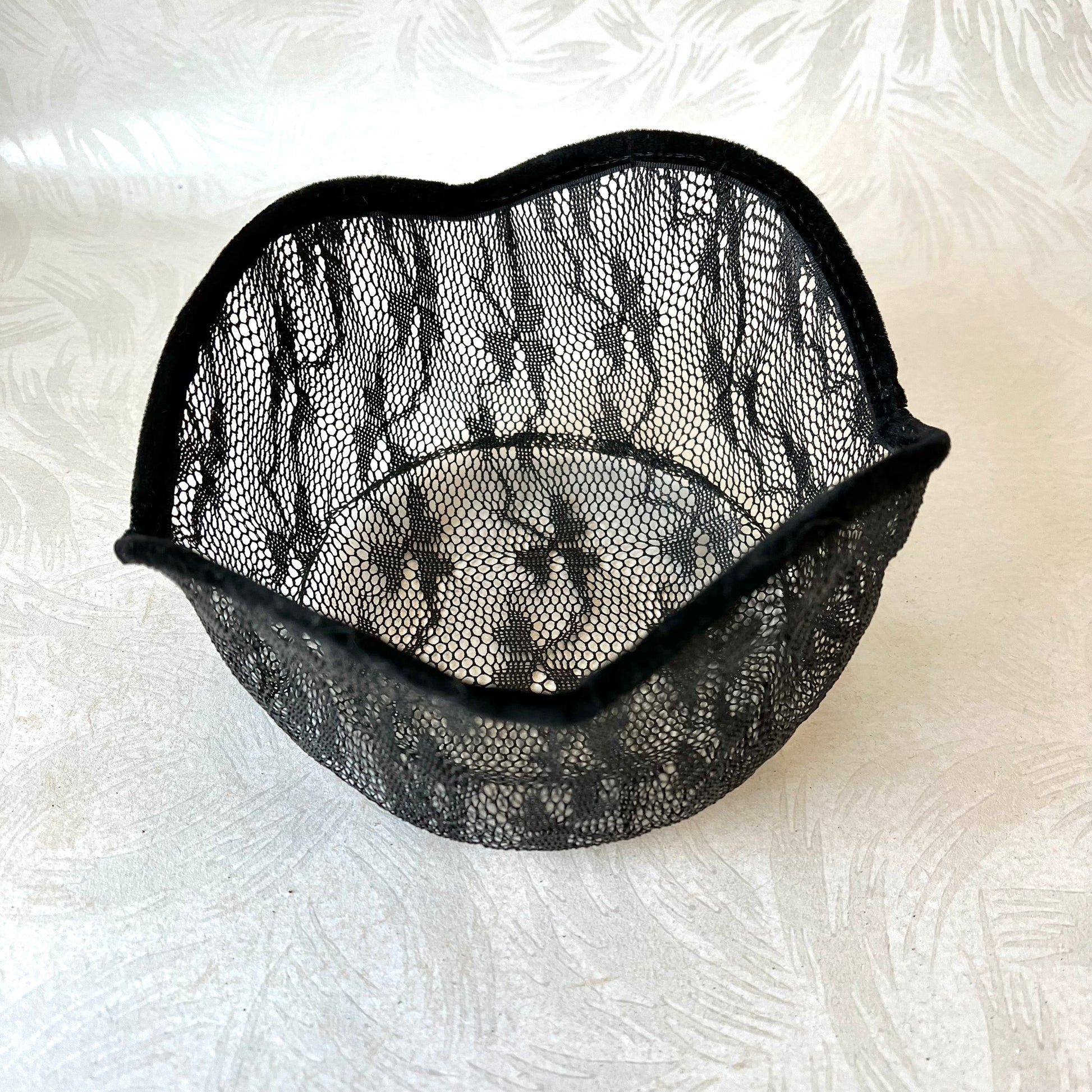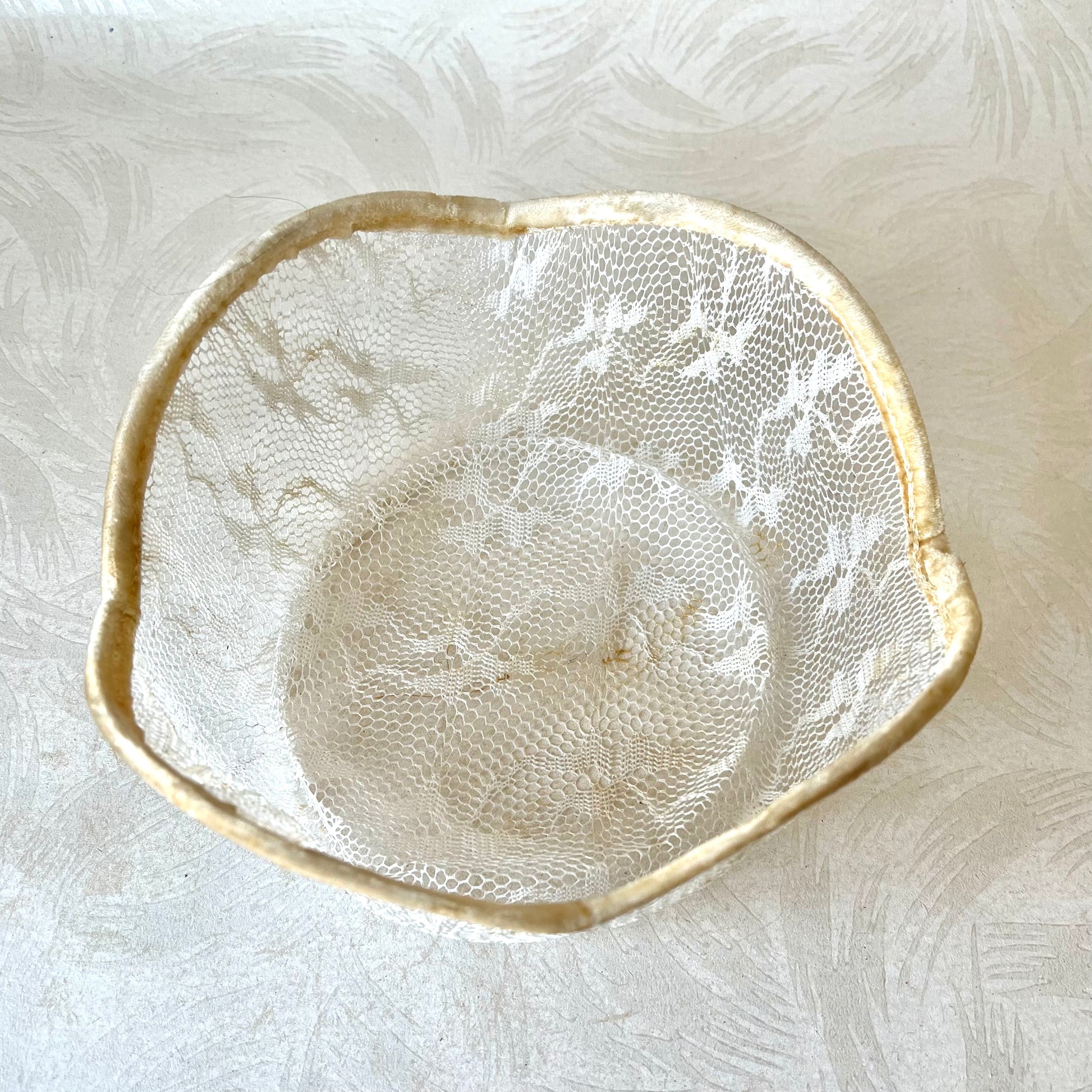Rare starched stiff lace net hat frames with velvet edges, in a Scalloped Suit hat shape from the Pearl Hemenway Milliner's lot in San Francisco.