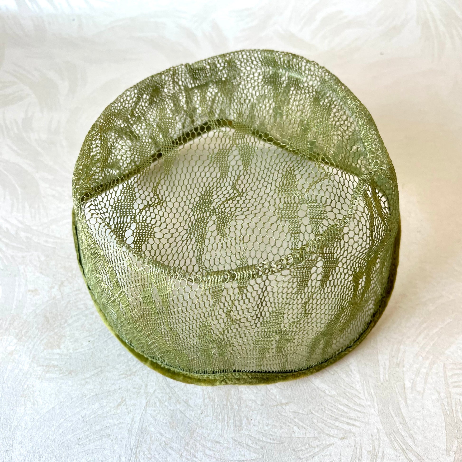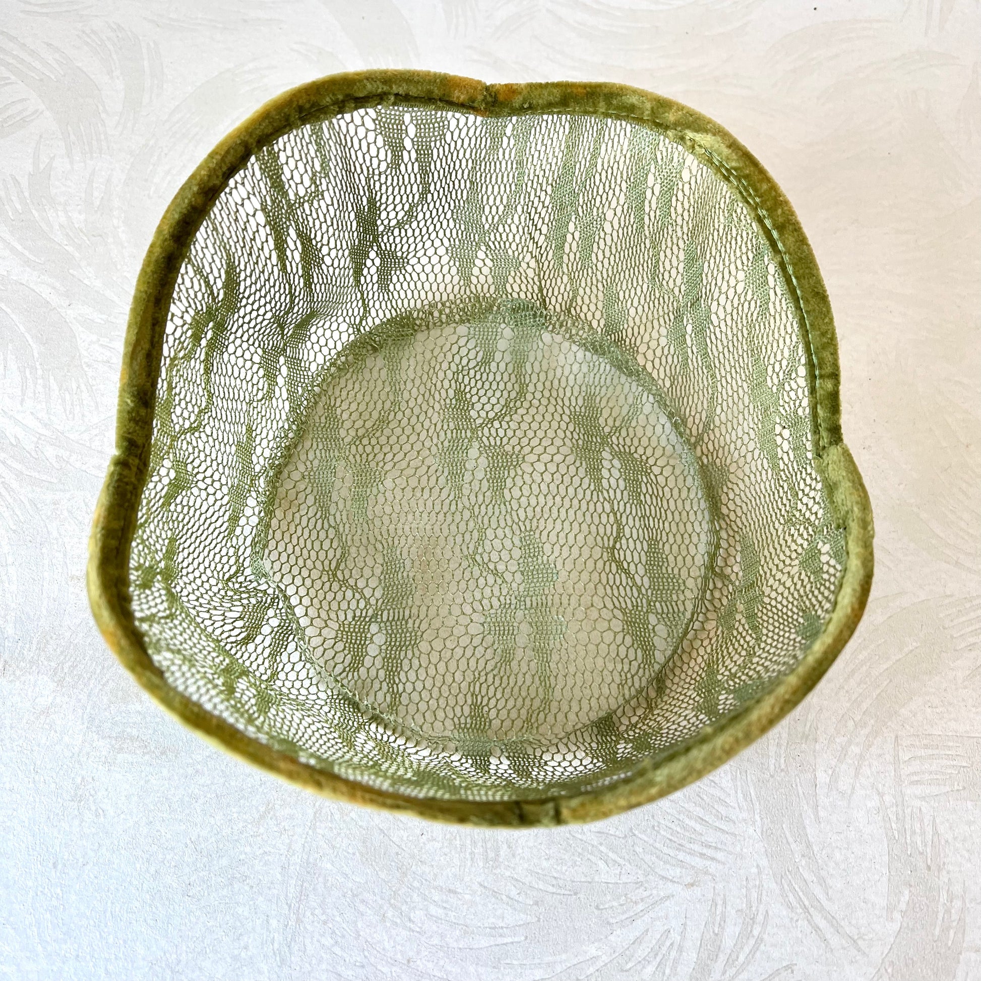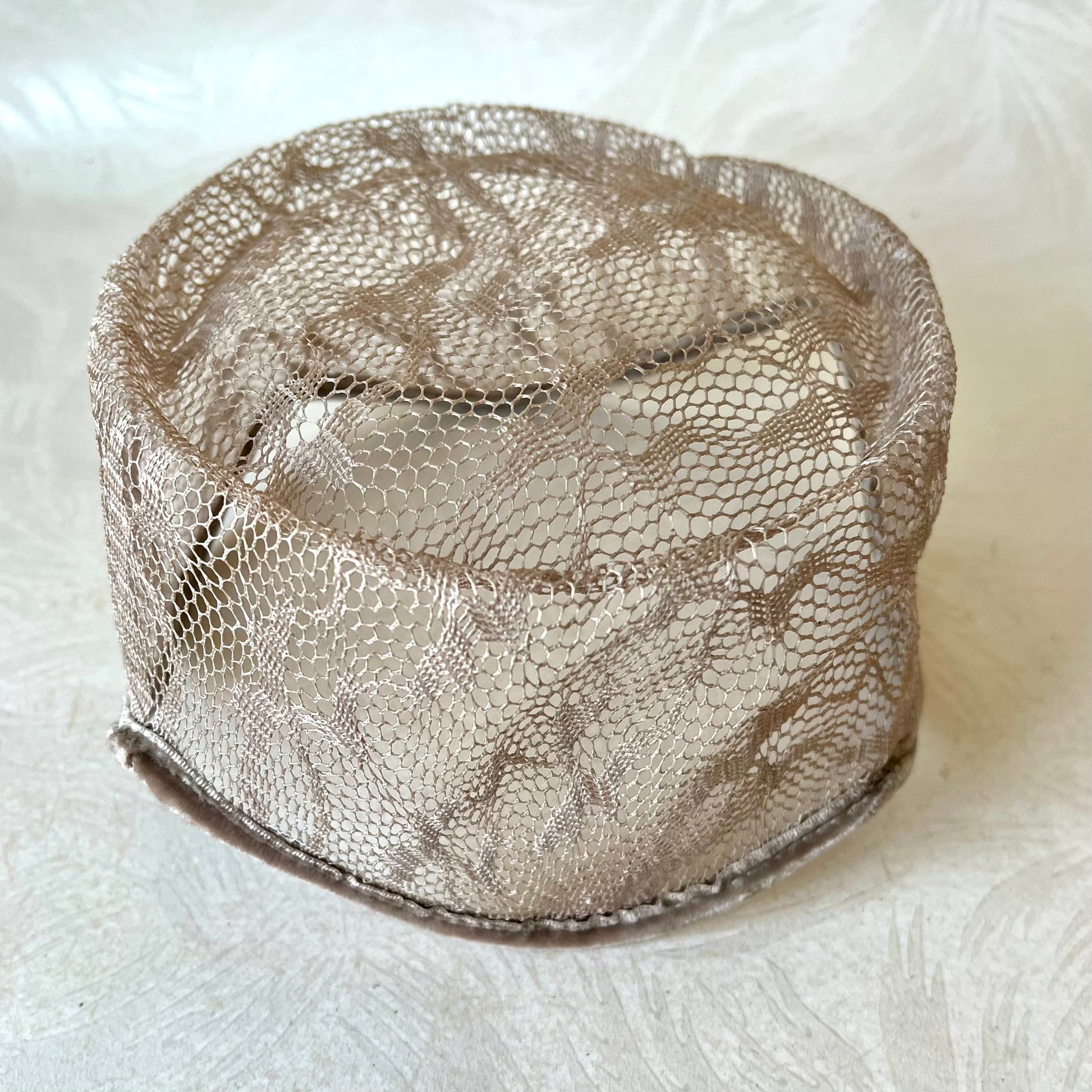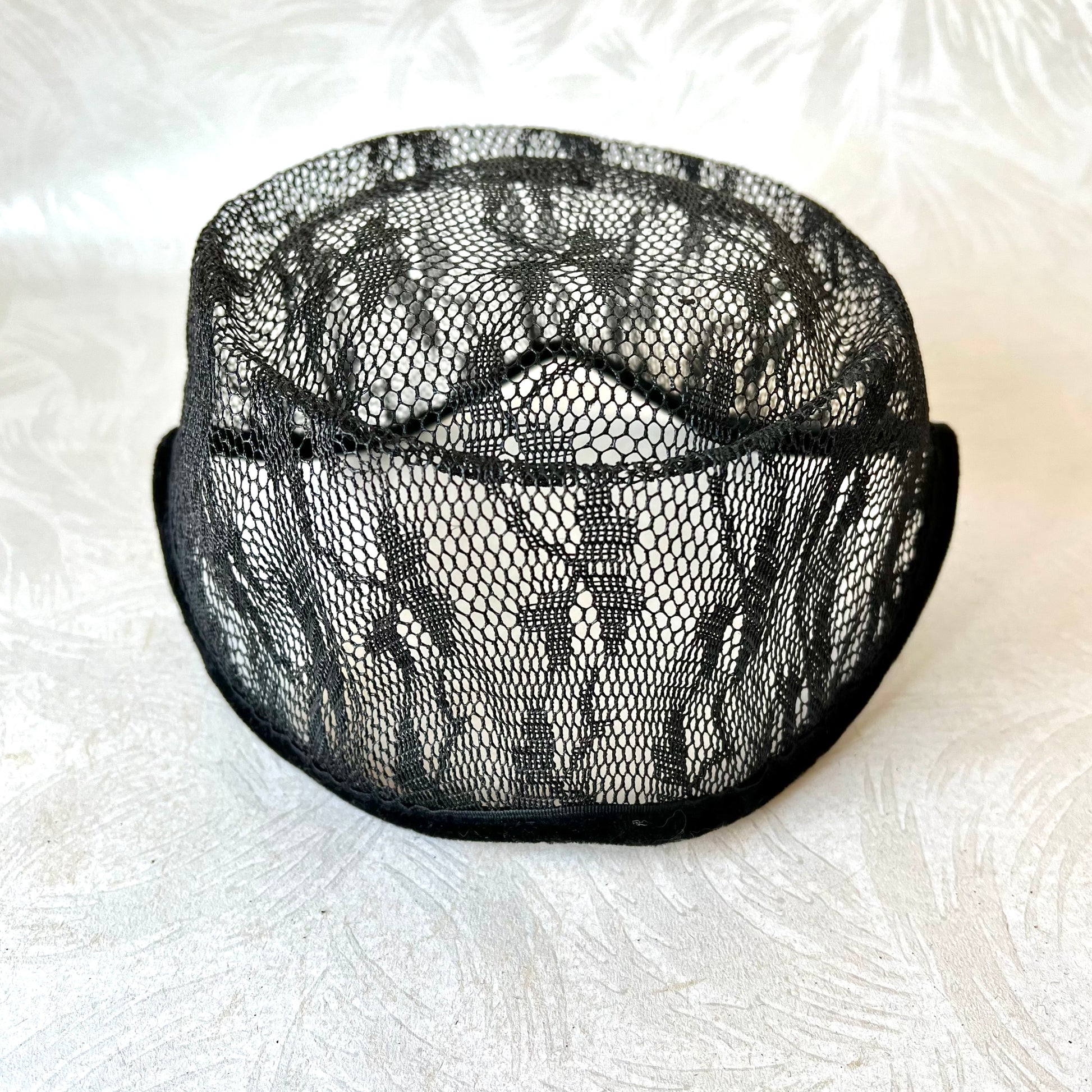 Rare starched stiff lace net hat frames with velvet edges, in a Scalloped Suit hat shape from the Pearl Hemenway Milliner's lot in San Francisco.