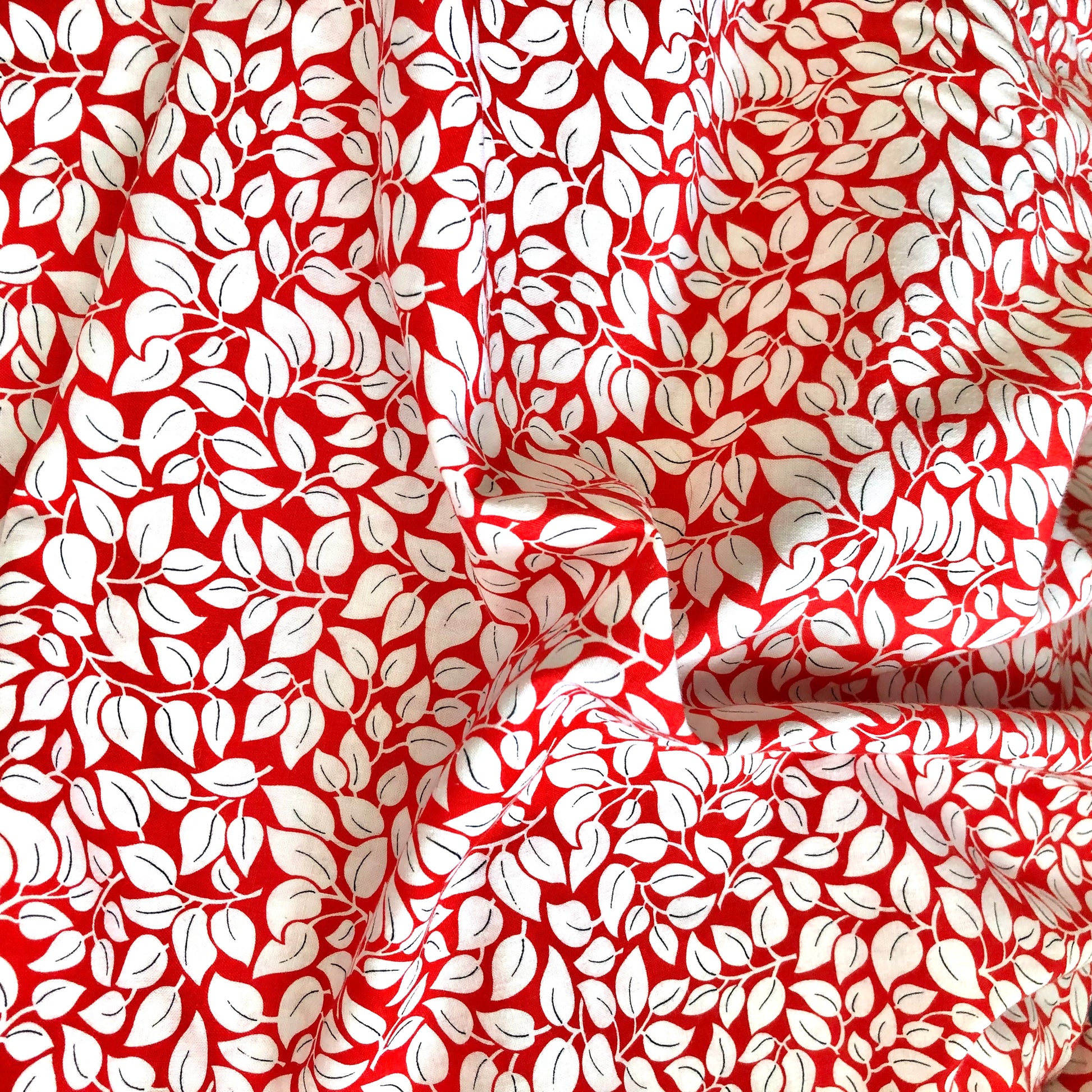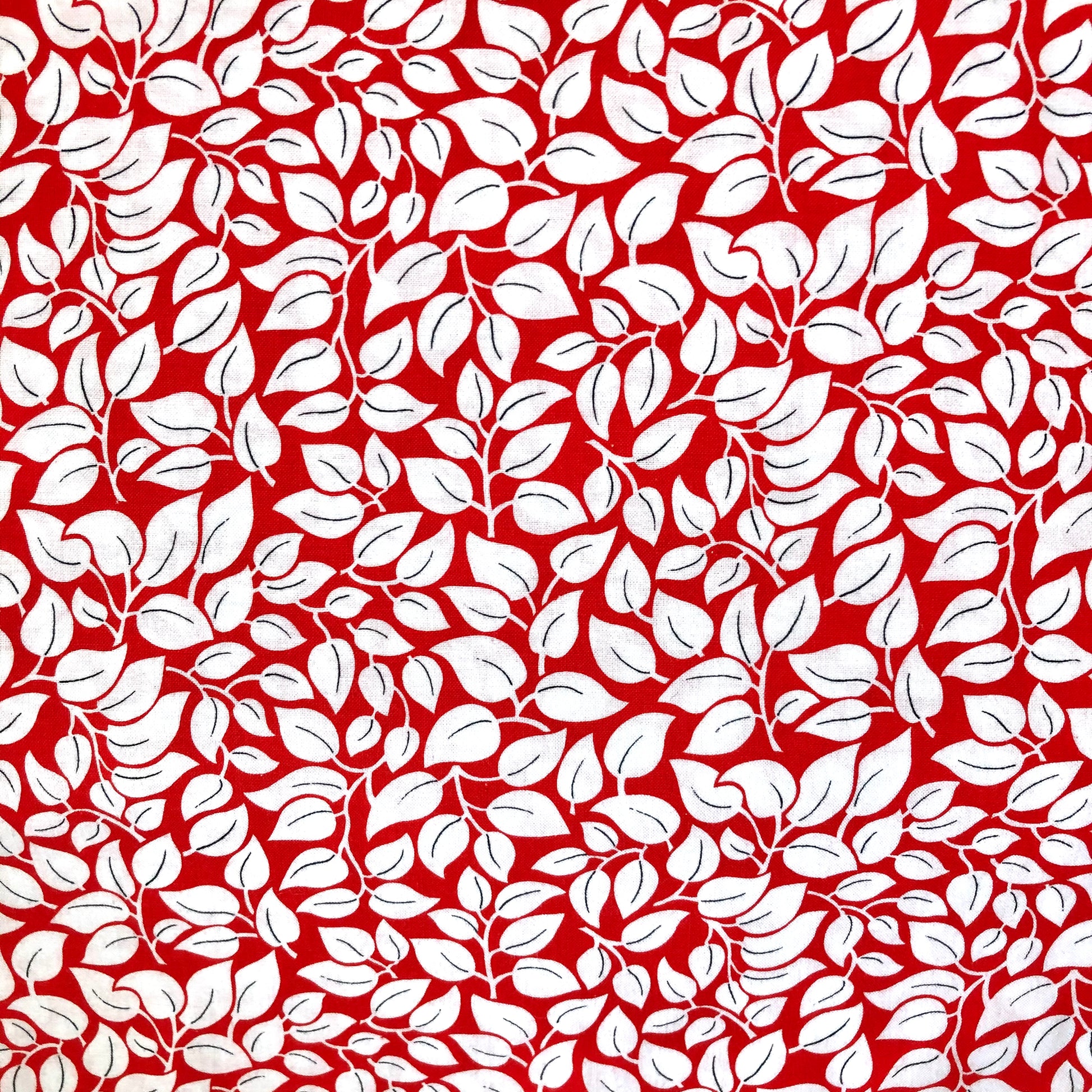 White leaves on a red background 100% Cotton fabric by Timeless Treasures.