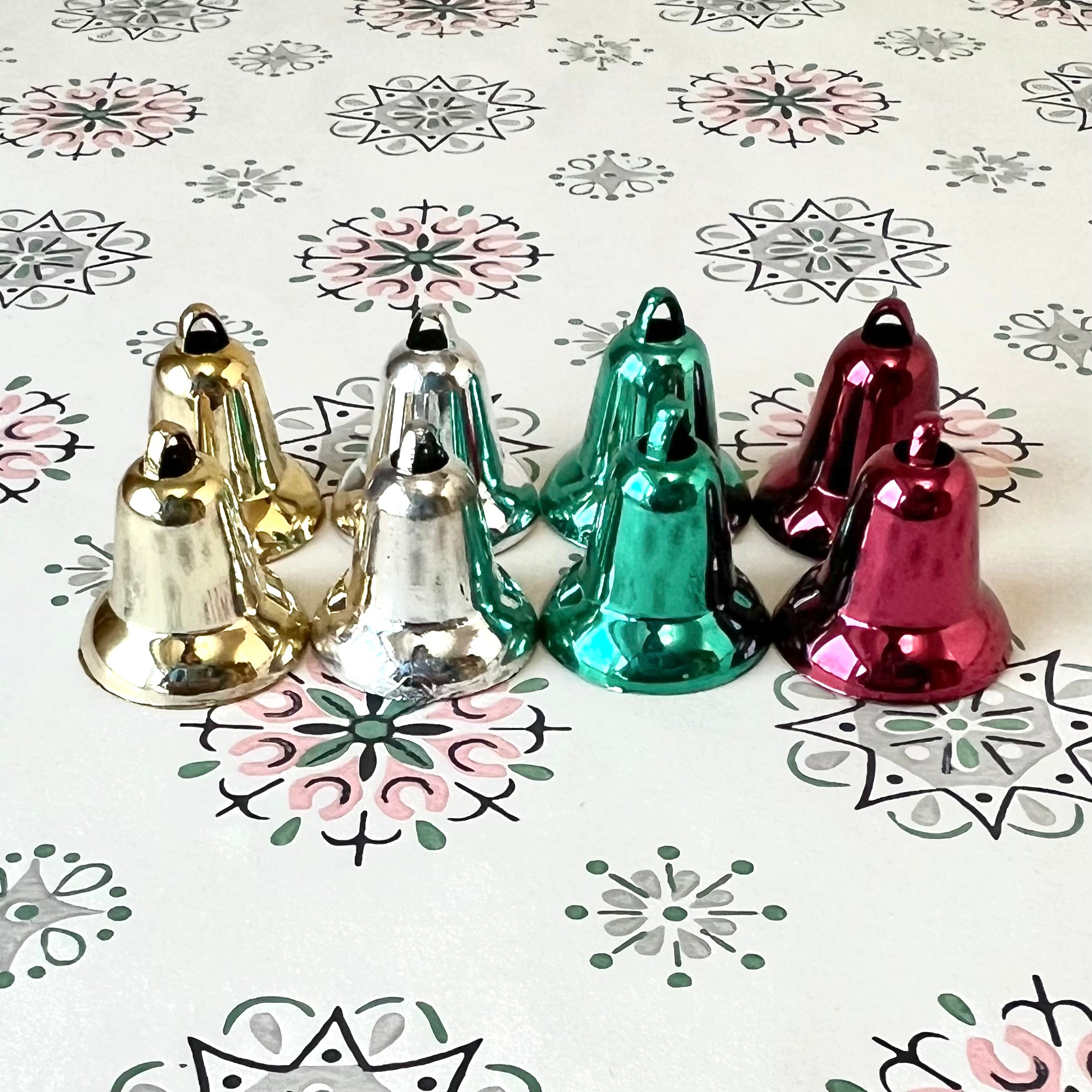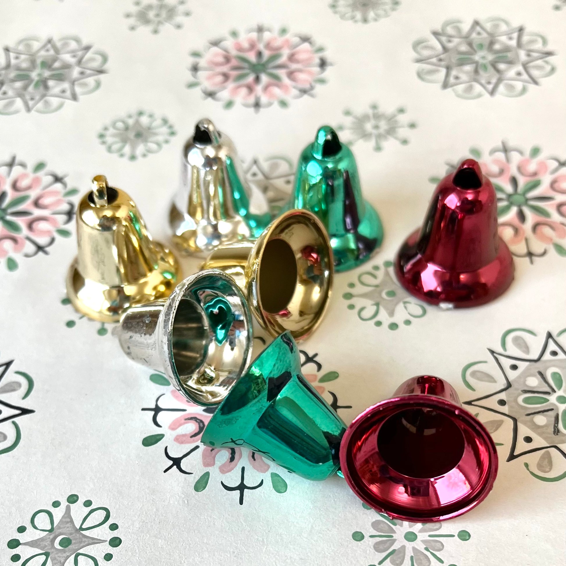 Little metallic plastic bells from the 1960's. Think of all the embellishing you can do with these cuties.New old stock.