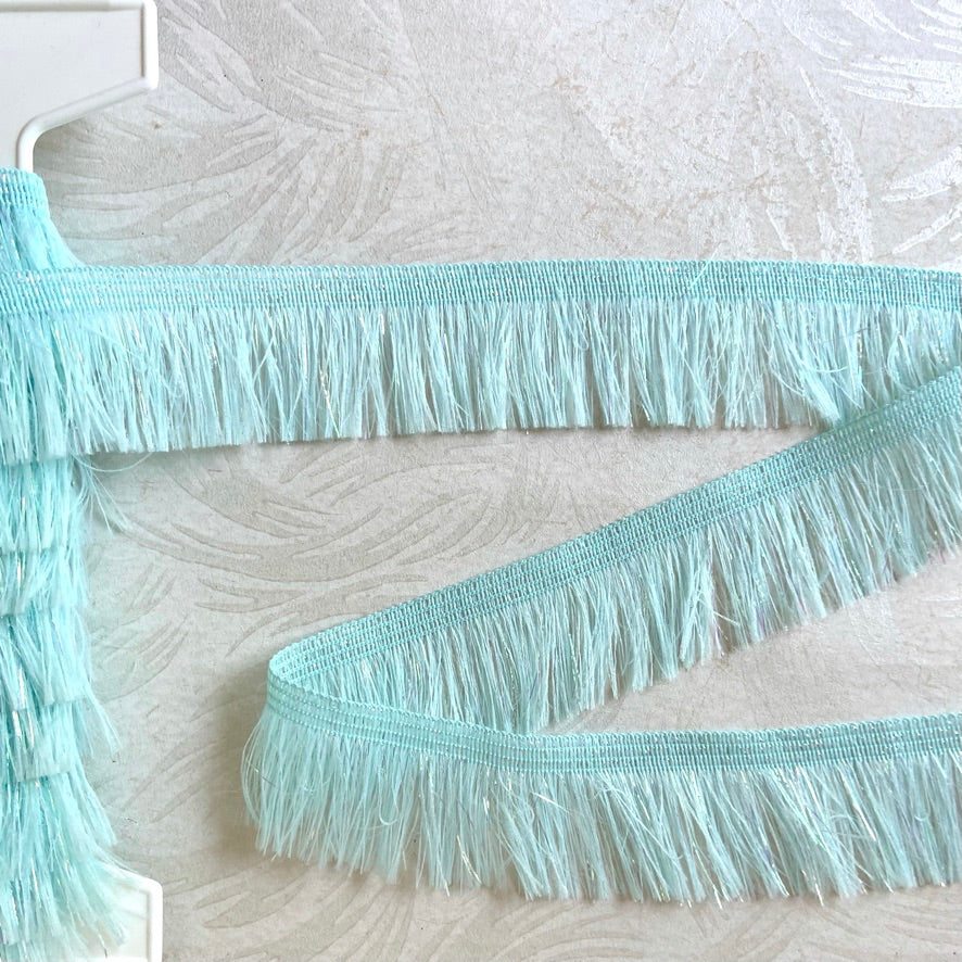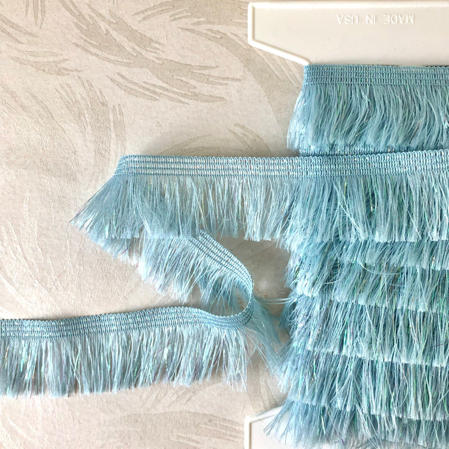 Sparkly delicate fringe in the prettiest colors. Thin strands of fiber interspersed with iridescent mylar.