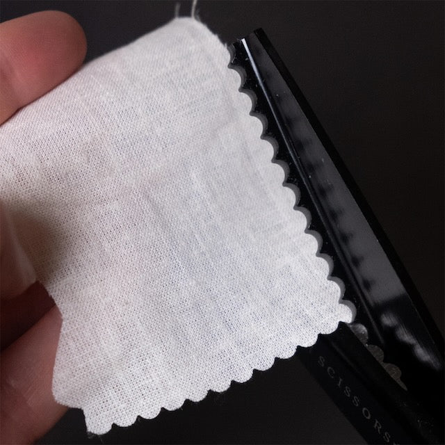 Midnight Edition Scalloped Pinking Shears. Instead of the classic zigzag edge, scalloped pinking shears create a soft, rounded finish that helps prevent fraying. Designed to be smooth and powerful, our Scalloped Pinking Shears are a great addition to your creative toolkit.