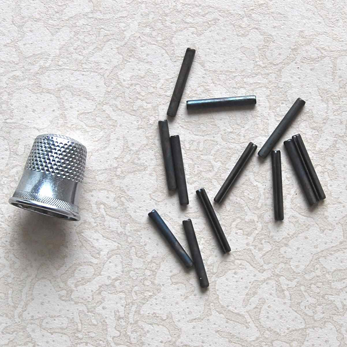 Little rolled pieces of metal used to connect two ends of wire. Crimp with heavy duty wire cutters to grip.