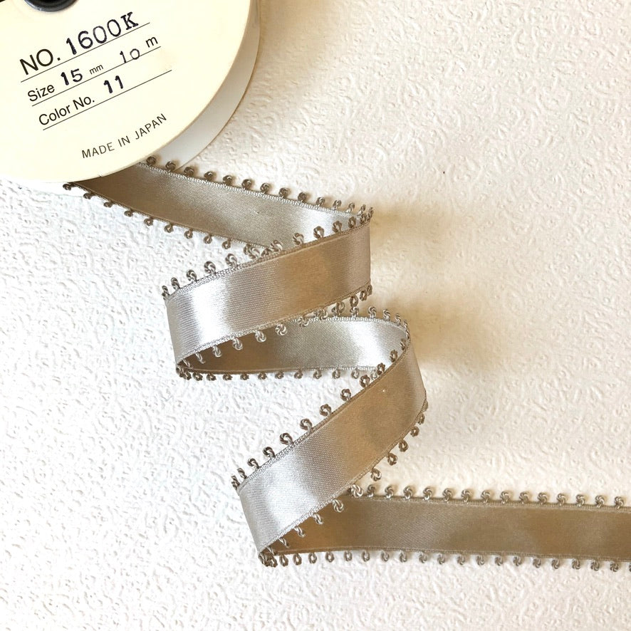 Gorgeous double faced satin ribbon by Mokuba of Japan with dainty picot edges.