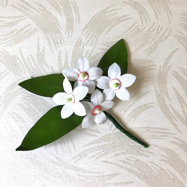 A delightful bunch of friendly narcissus blossoms wrapped in between 3 paper leaves. Made in Germany