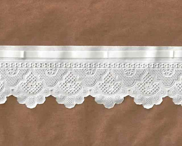 Dresden die-cut paper edging. Dress up your shelf edges, cake plates, or gift boxes with this beautiful embossed 2" paper lace in 5 meter lengths.