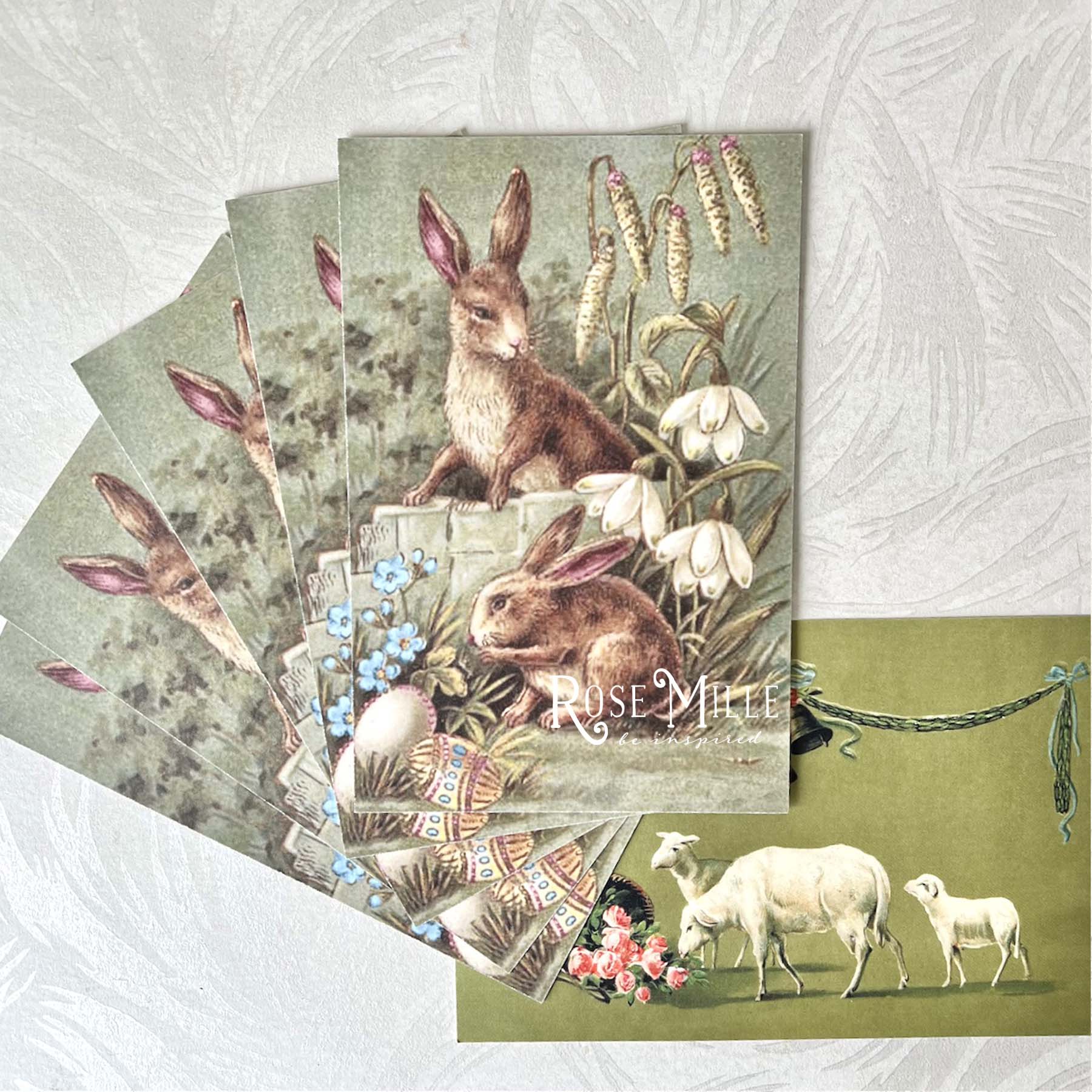 Gorgeous, double vintage image cards with a family of sheep on one side and a pair of rabbits on the other. Use these cards to layer and decorate a beautiful Spring creation.