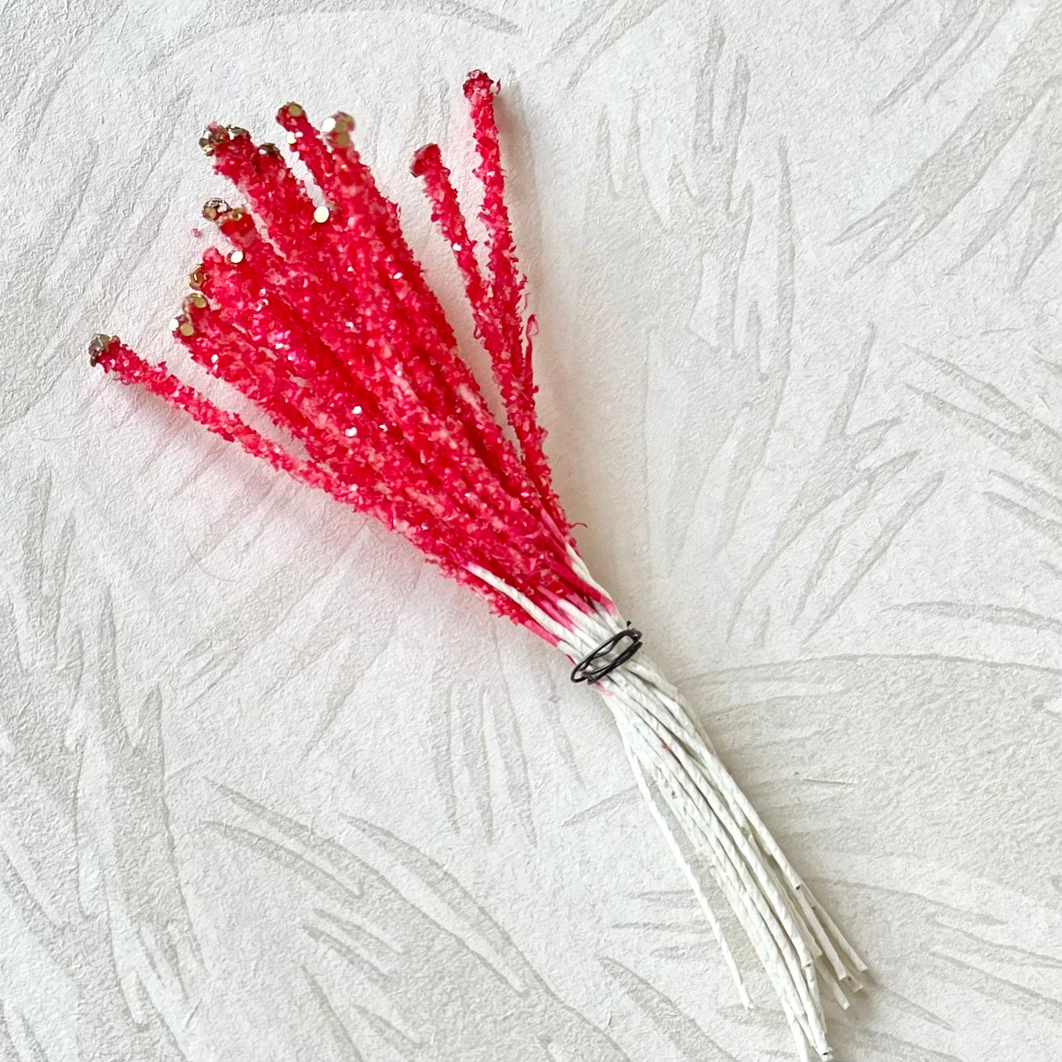 Amazing flowers stamens that remind us of rock candy. Crushed crystal in a choice of colors with metallic gold tips.
