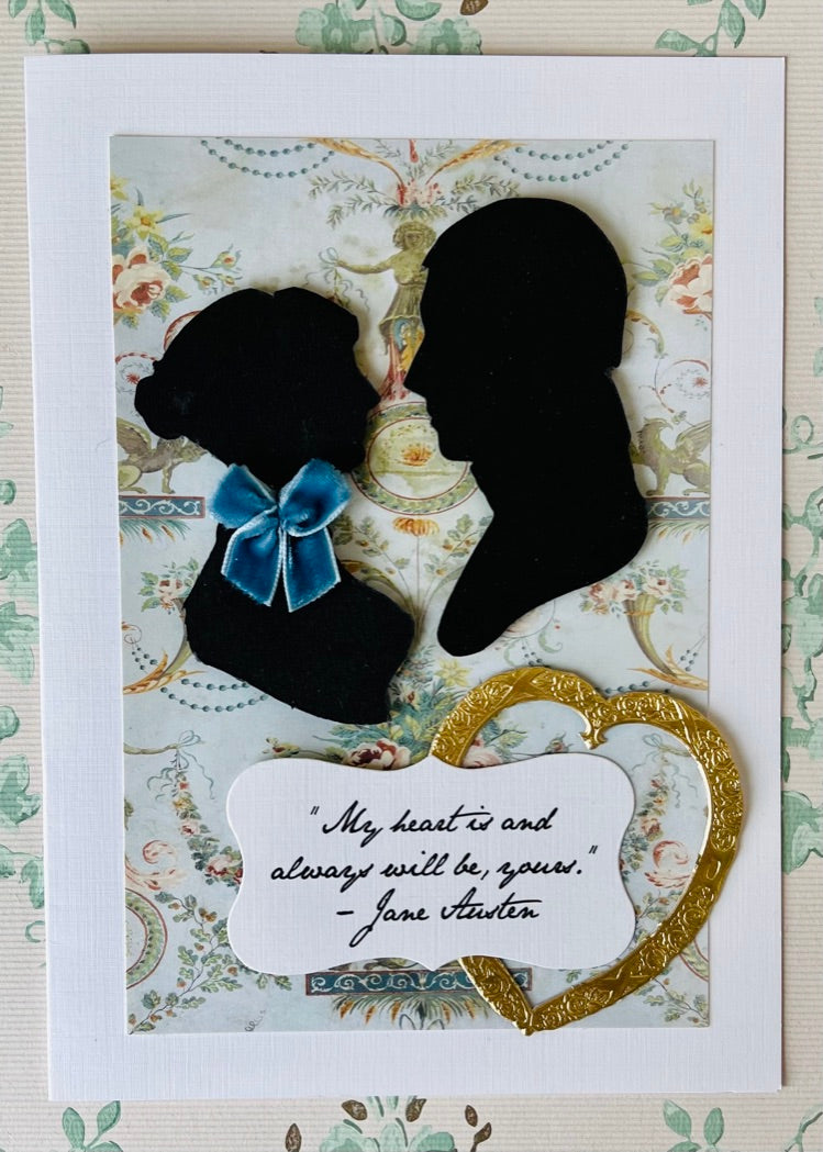 Made to order, perfectly finished for you to give to your special someone. Dimensional greeting cards with Dresden die-cuts, vintage images, pre-cut shapes, velvet bows, and our signature euro flap envelope. Blank inside.