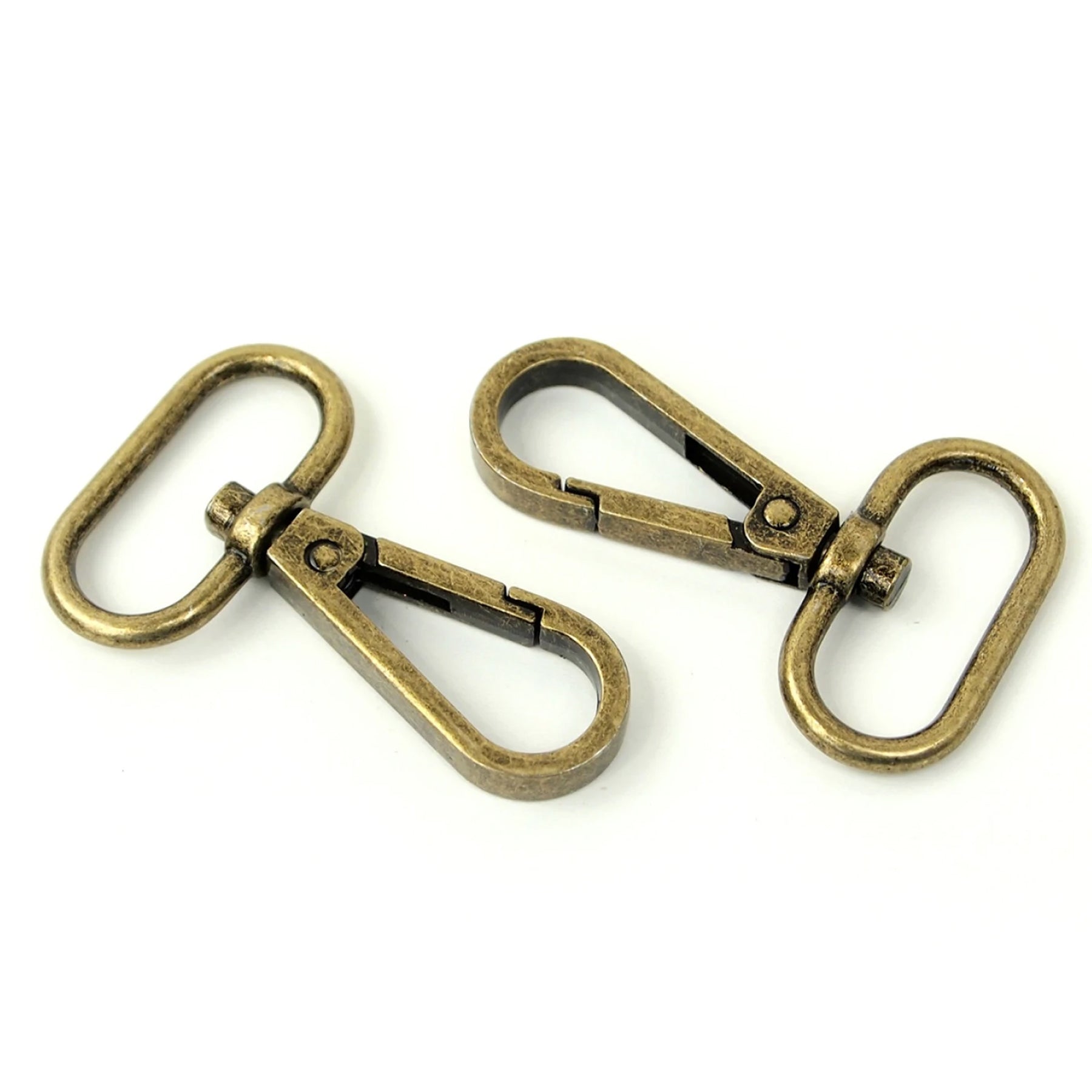 Swivel hooks are a functional piece of hardware and add a bit of bling to your handmade bags. You can attach swivel hooks to your straps and handles to give you the option to remove the straps. Because this hardware rotates, your straps are less likely to twist and knot, so your bag is much more comfortable to carry. You can pair swivel hooks with our coordinating D-Rings, Rectangle Rings, O-Rings, or Triangle Rings for a professional look.