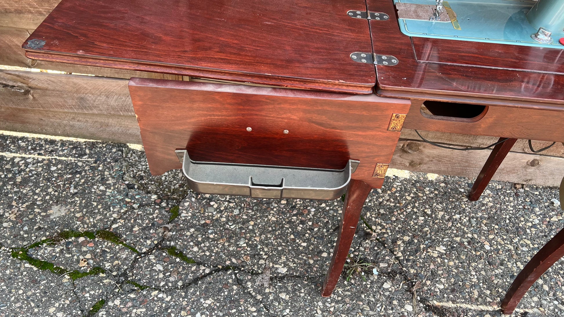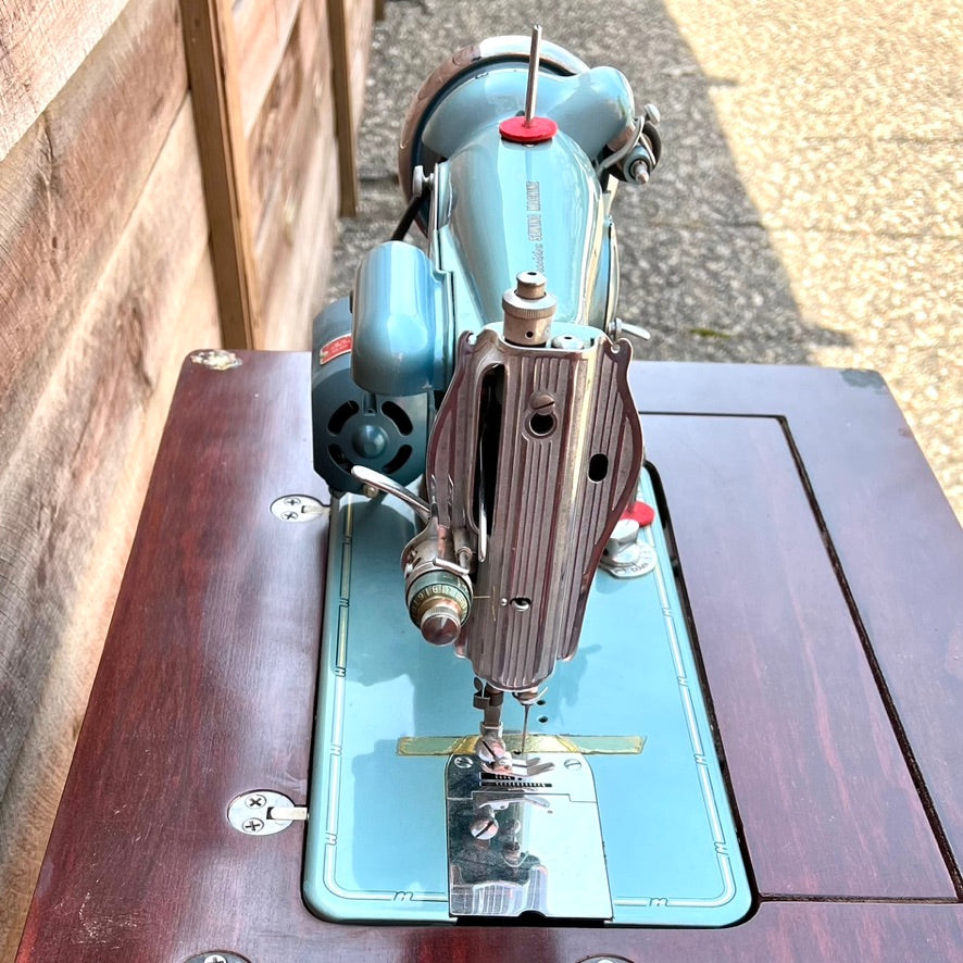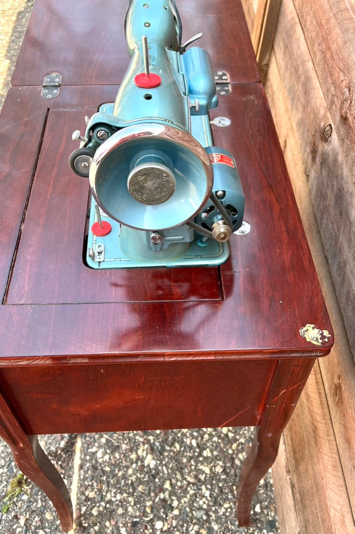 Sleek Modern Aqua Sewing Machine In Cabinet
