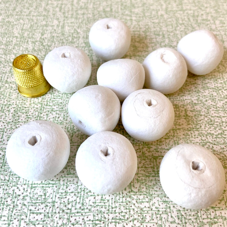 Plain spun cotton fibers spun into apple shapes, ready to paint and add to any craft project.