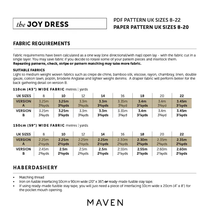 - PDF PATTERN – UK SIZES 8-22 / PAPER PATTERN – UK SIZES 8-20