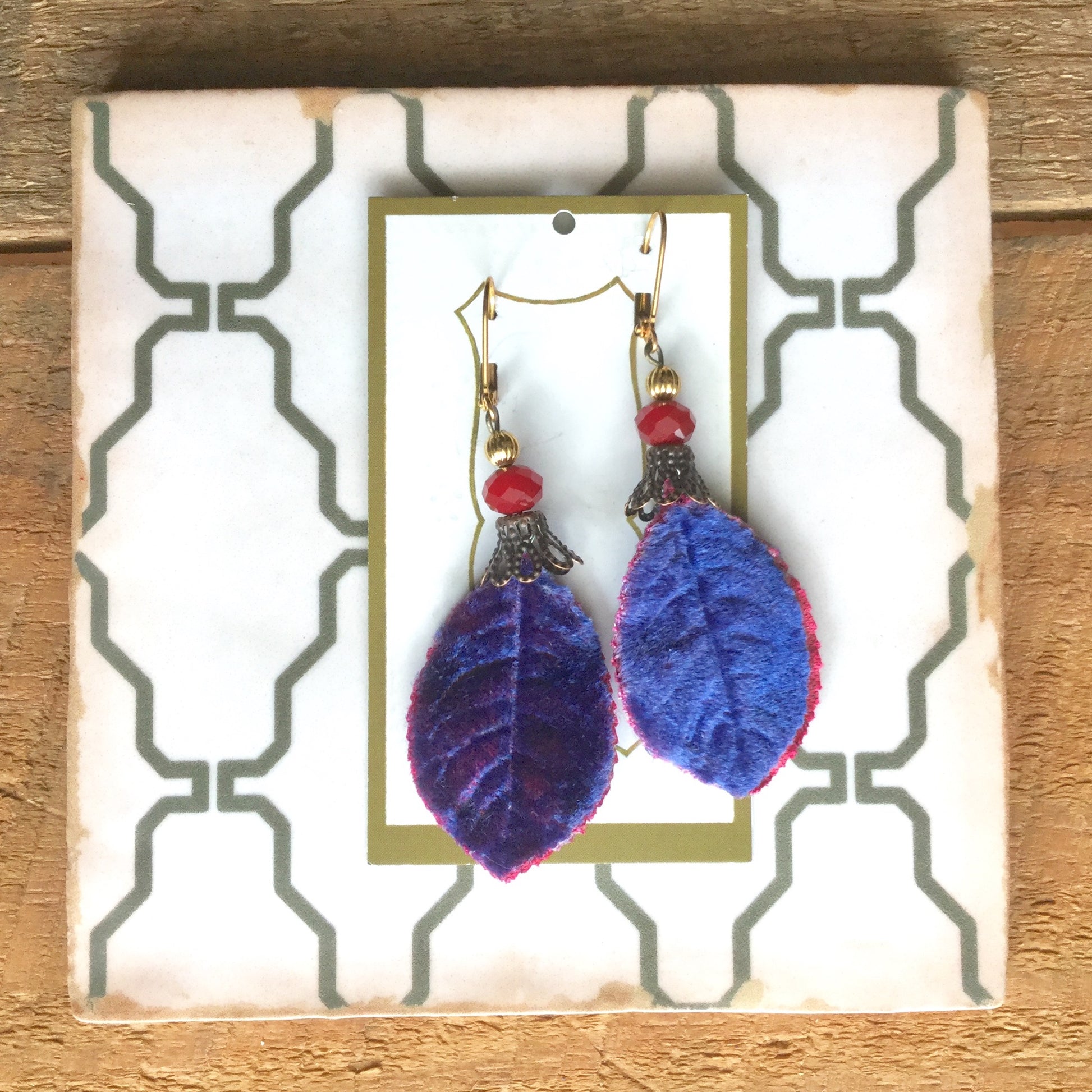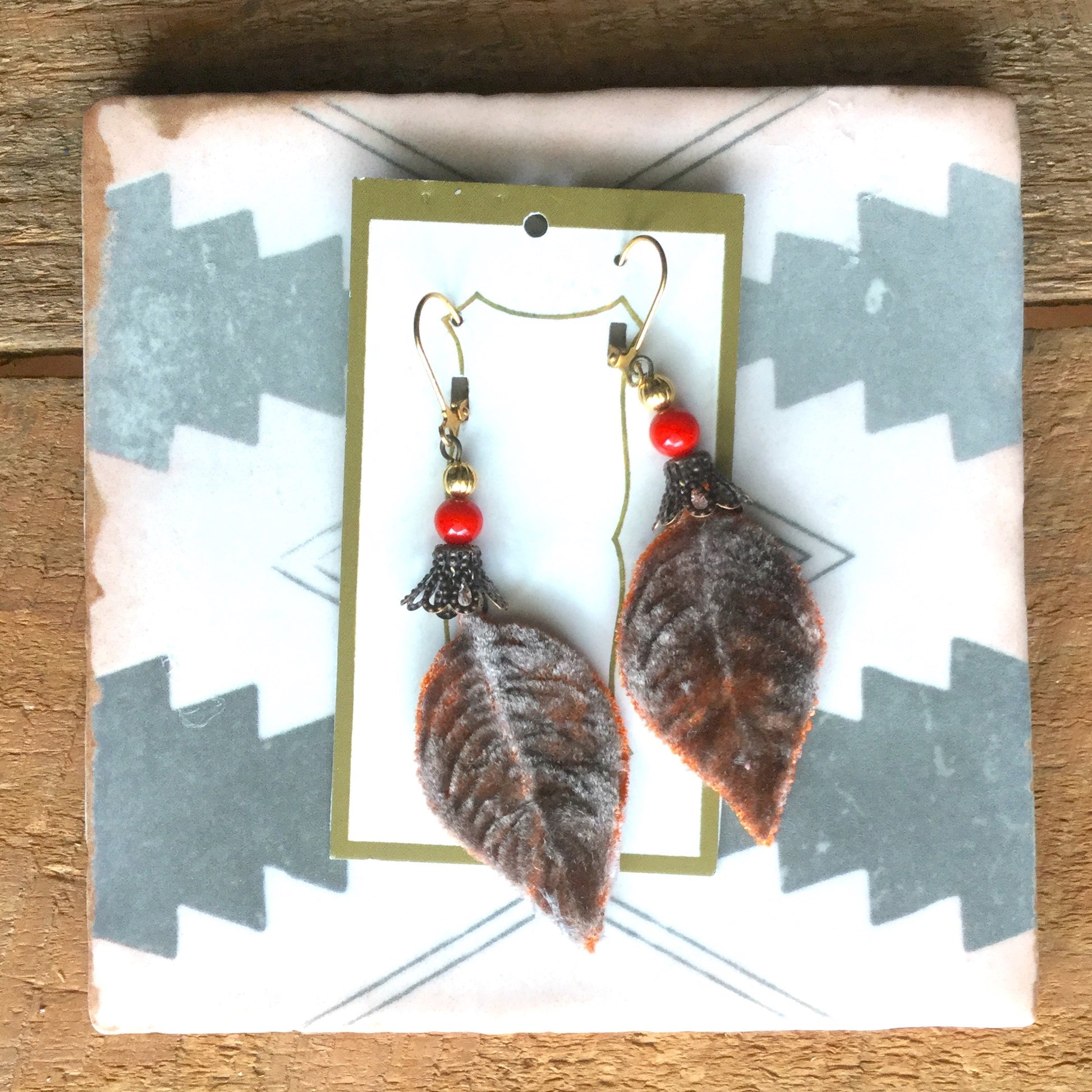 Light as air, vintage velvet leaves dangling delicately from antique gold findings.