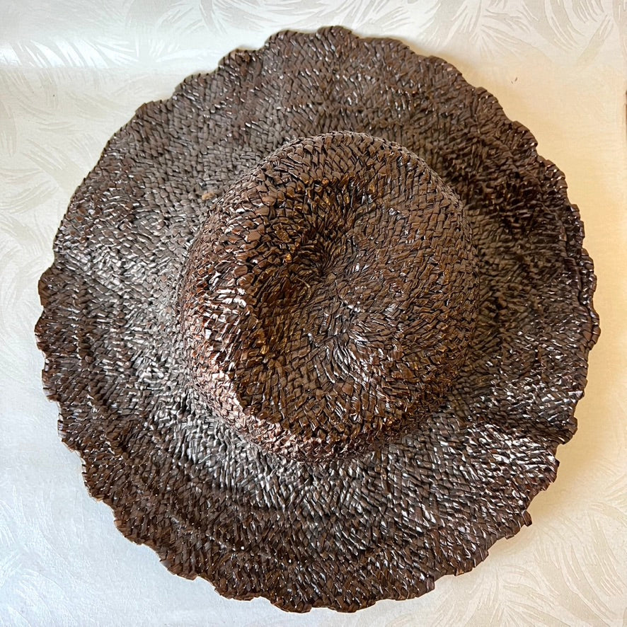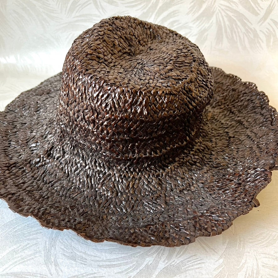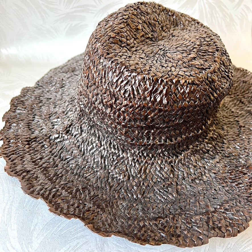 Shiny chocolate brown woven body made from cello straw. Ready to shape or simply wear as-is.