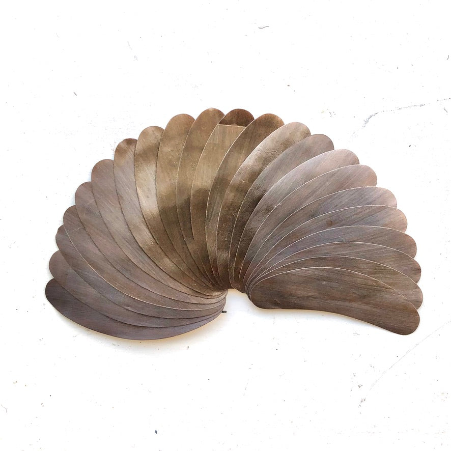 Unusual, hand stitched vintage trims made from flattened, dyed, and stitched straw for the millinery trade. They are comprised of 21 separate pieces of straw. Wonderful behind a flower or berries on a hat.