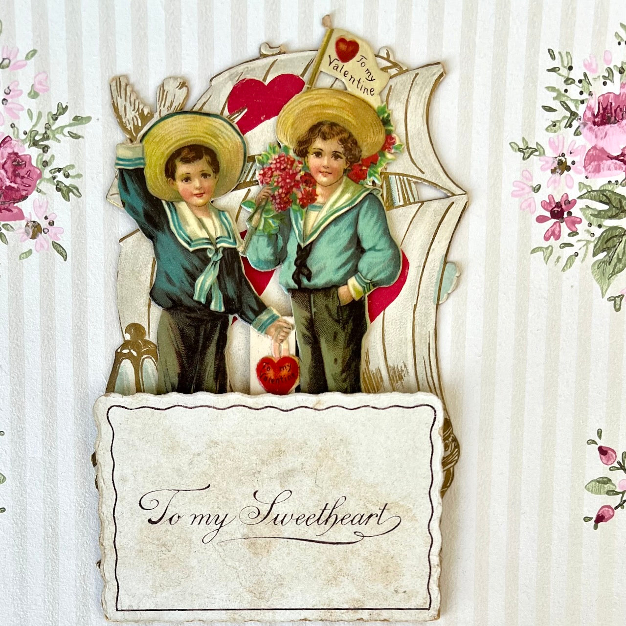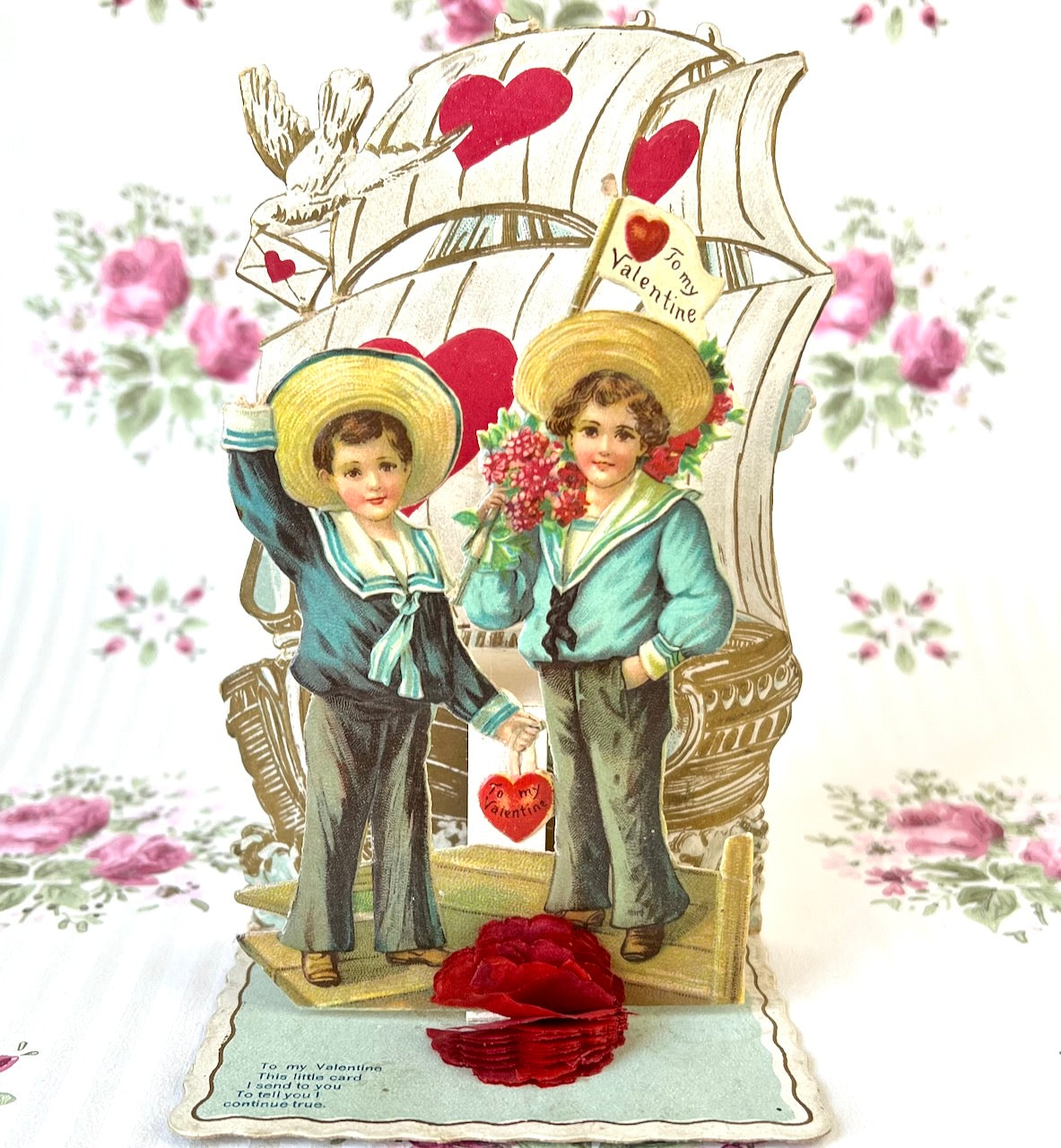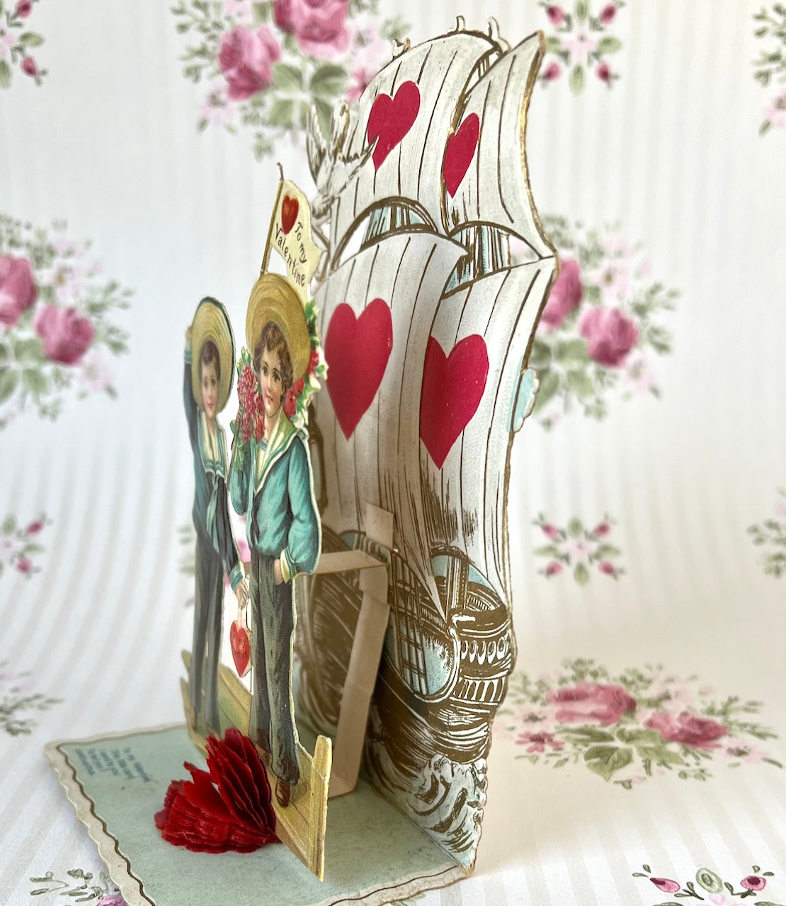 Beautiful 3D Vintage Valentine Card. Pull down the front panel to make the card stand up.