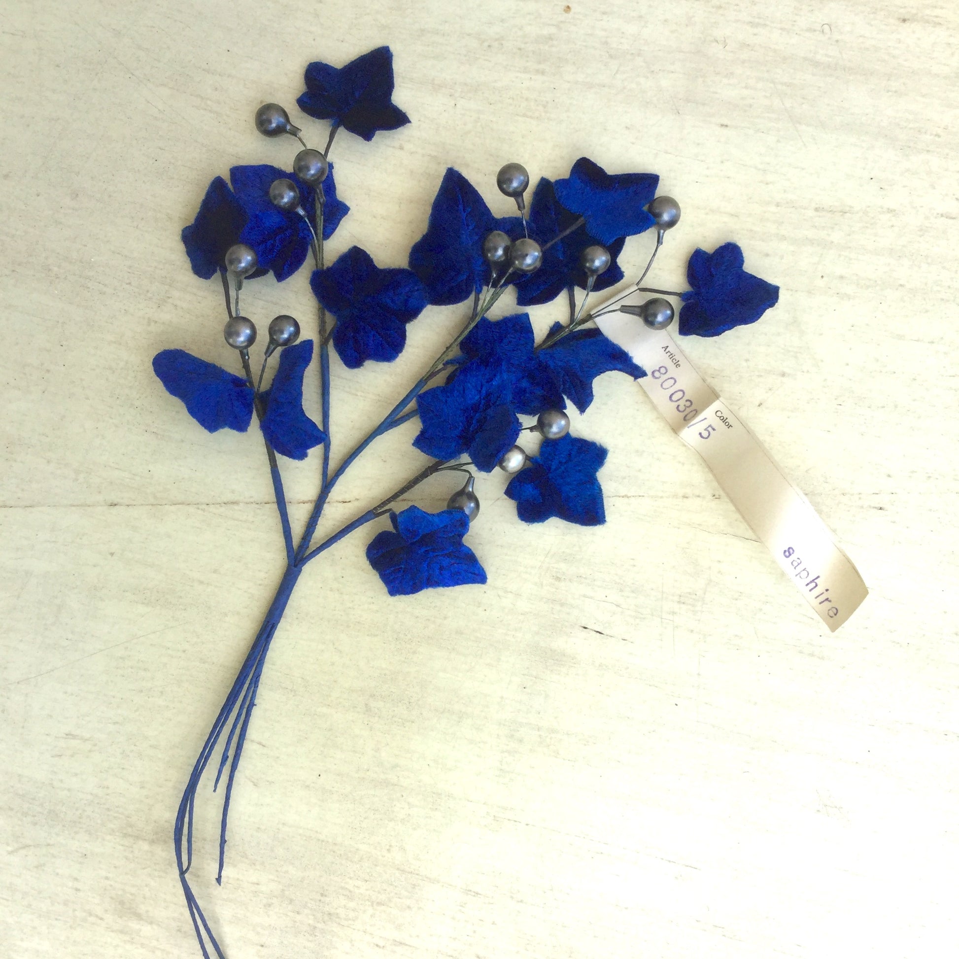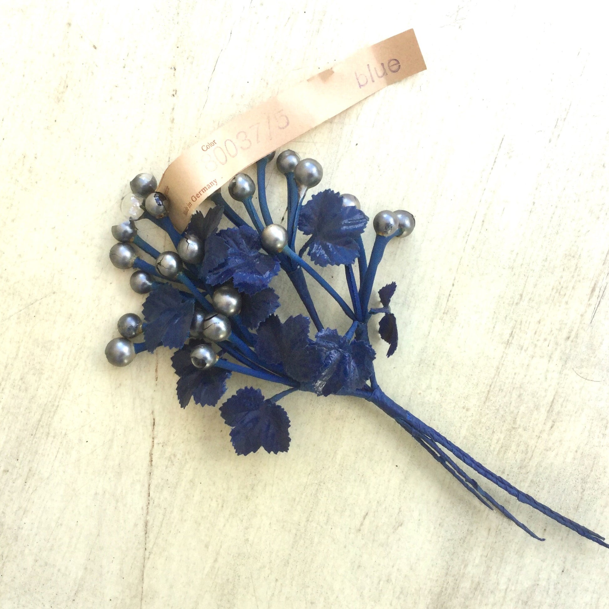 Glass silvery berries pair with velvet, shiny or fabric leaves, used to decorate hats back in the day. Now these are perfect to enhance a holiday wreath. Take them apart to add to a wintery scene.