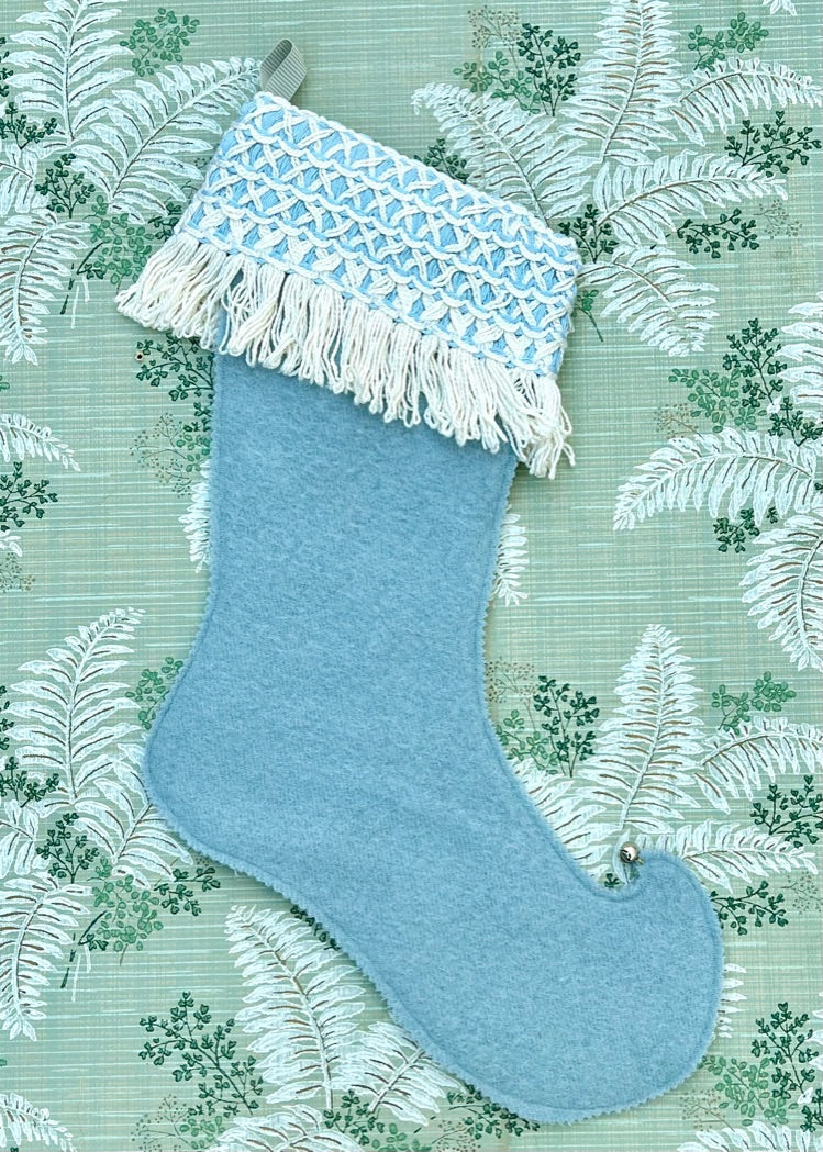 Vintage Wool Stockings - Wide Cotton Fringe on Blue